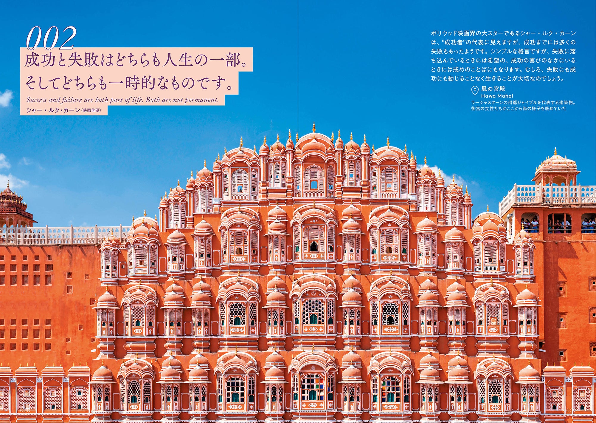 心が揺さぶられる美しい景色と読むと前向きな気持ちになれる名言を集めた「旅の名言&絶景シリーズ」は、40年以上海外ガイドを発行し続けてきた「地球の歩き方」編集室が厳選した、海外を旅した気分まで楽しめる新たなシリーズ。今回お届けするのは、旅するとさまざまな気づきが得られるインドと、エキゾチックで魅力的なアラブの国々から、歴史に残る偉人の名言から各国の日常に根付いた素朴な言葉までを紹介。異国情緒あふれる景色とその国ならではのことばを楽しみましょう。