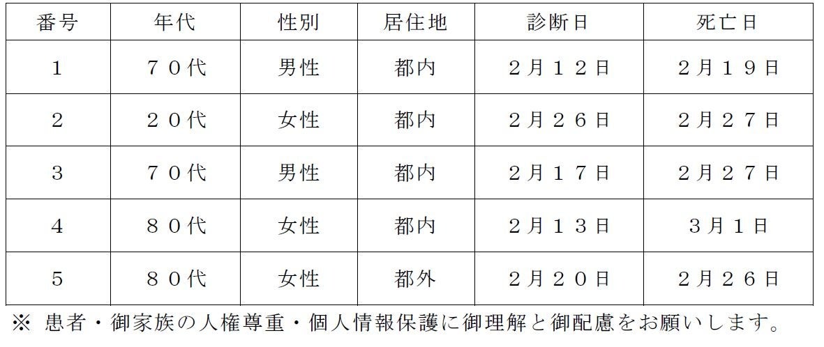 都内で新型コロナウイルスに感染した方が死亡されましたのでお知らせします。