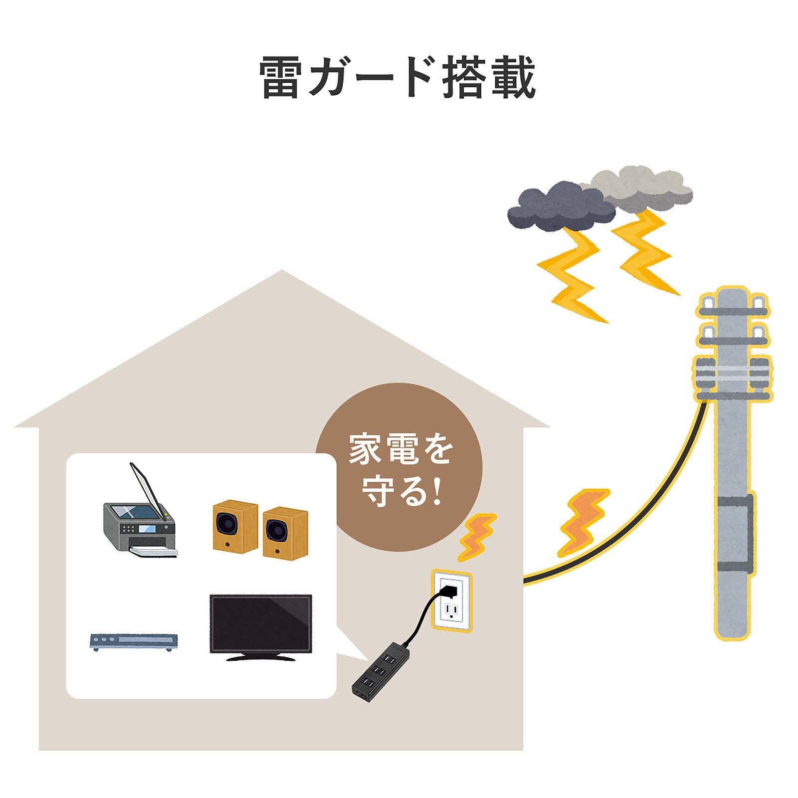 雷ガードを内蔵しており、接続機器を雷から守ります。