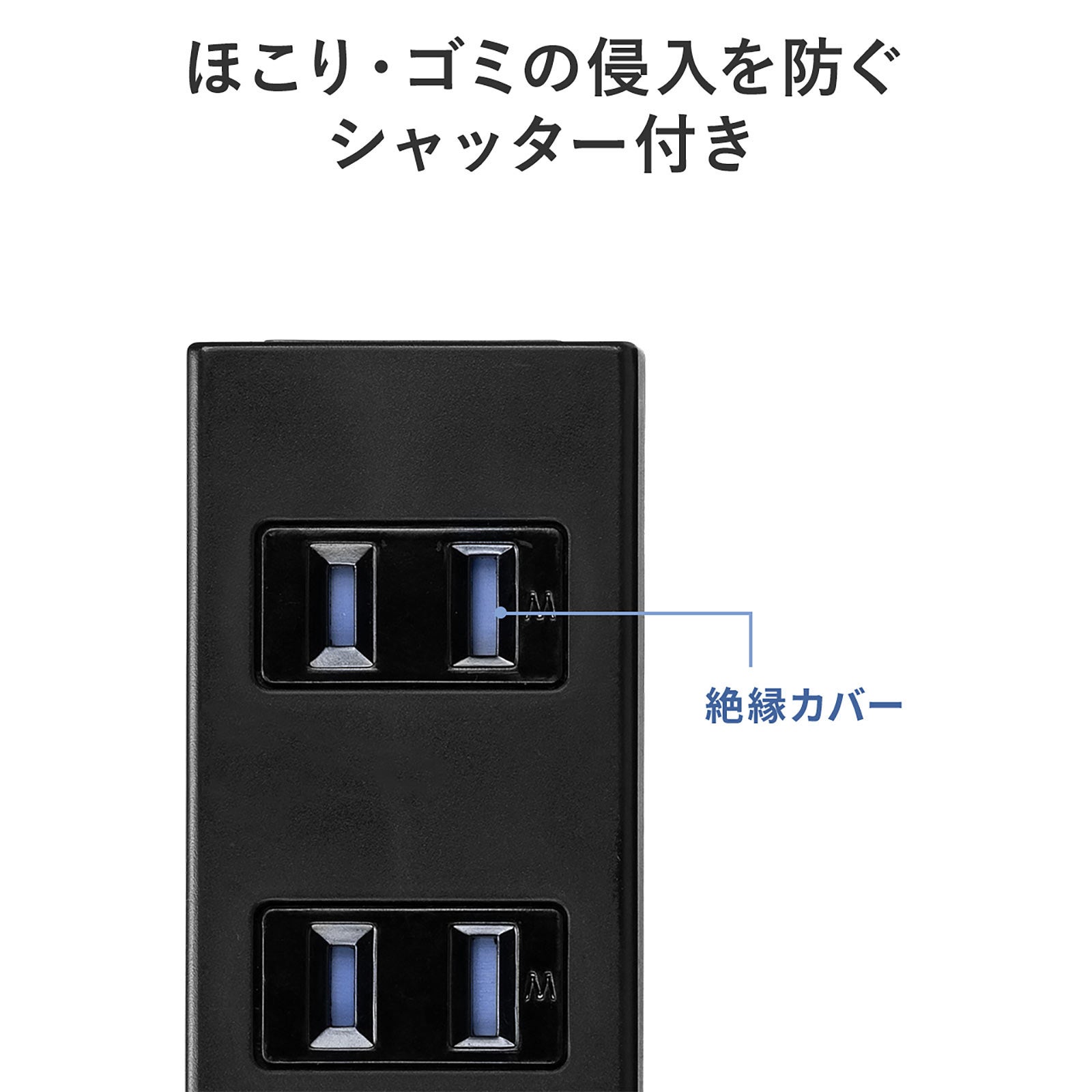 電源タップ 4個口 2P 2m マグネット 雷ガード シャッター スイングプラグ トラッキング予防