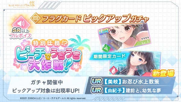 イベント「特別任務!? ビーチでうきうき大作戦!」攻略に役立つキャラクターやフラグカード出現率がUPしたキャラクターピックアップガチャ/フラグカードピックアップガチャをそれぞれ開催中!