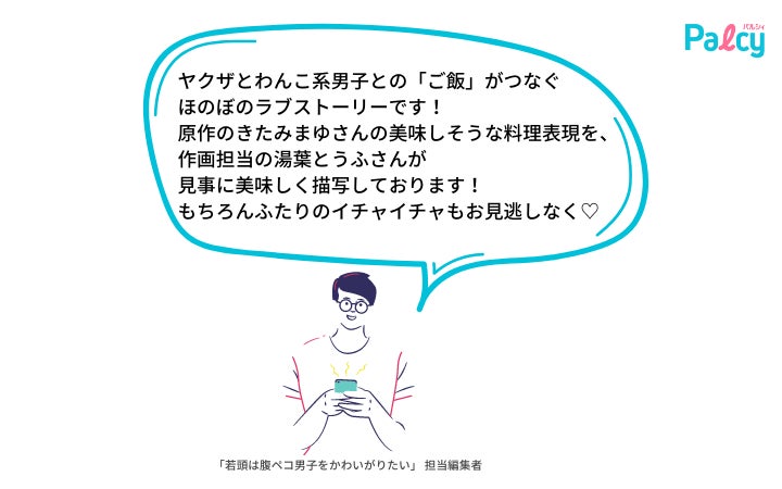 『若頭は腹ペコ男子をかわいがりたい』は少女・女性マンガアプリPalcyにて連載され、月イチで更新予定。