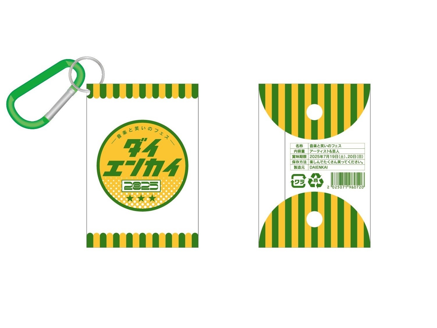 そして、“宴会”にちなんだタイトルが名付けられた「DAINEKAI2025公式グッズ」は、定番のTシャツやタオル、ラバーバンドなどお馴染みのアイテムはもちろんのこと、今年はPVCポーチなどフェスに持ってこいのアイテムが新登場。生地など細部にまでこだわりを施し、一段とパワーアップしたグッズを、ぜひ会場にてお買い求めください。税込4,000円以上お買い上げの方にはDAIENKAIオリジナルショッパーをプレゼントいたします。
