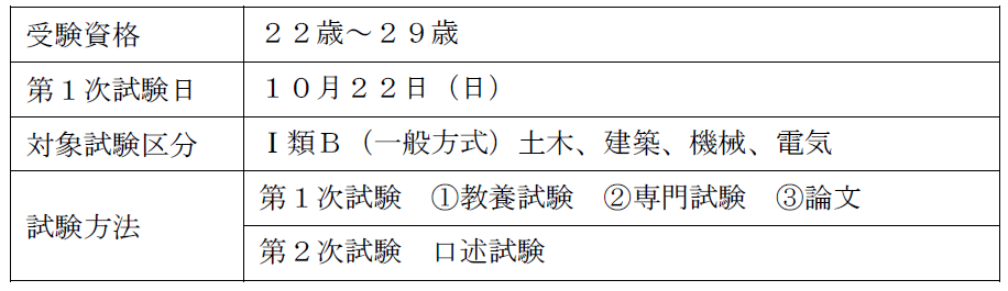 - Ⅰ類B(一般方式)第2回(土木、建築、機械、電気)を実施