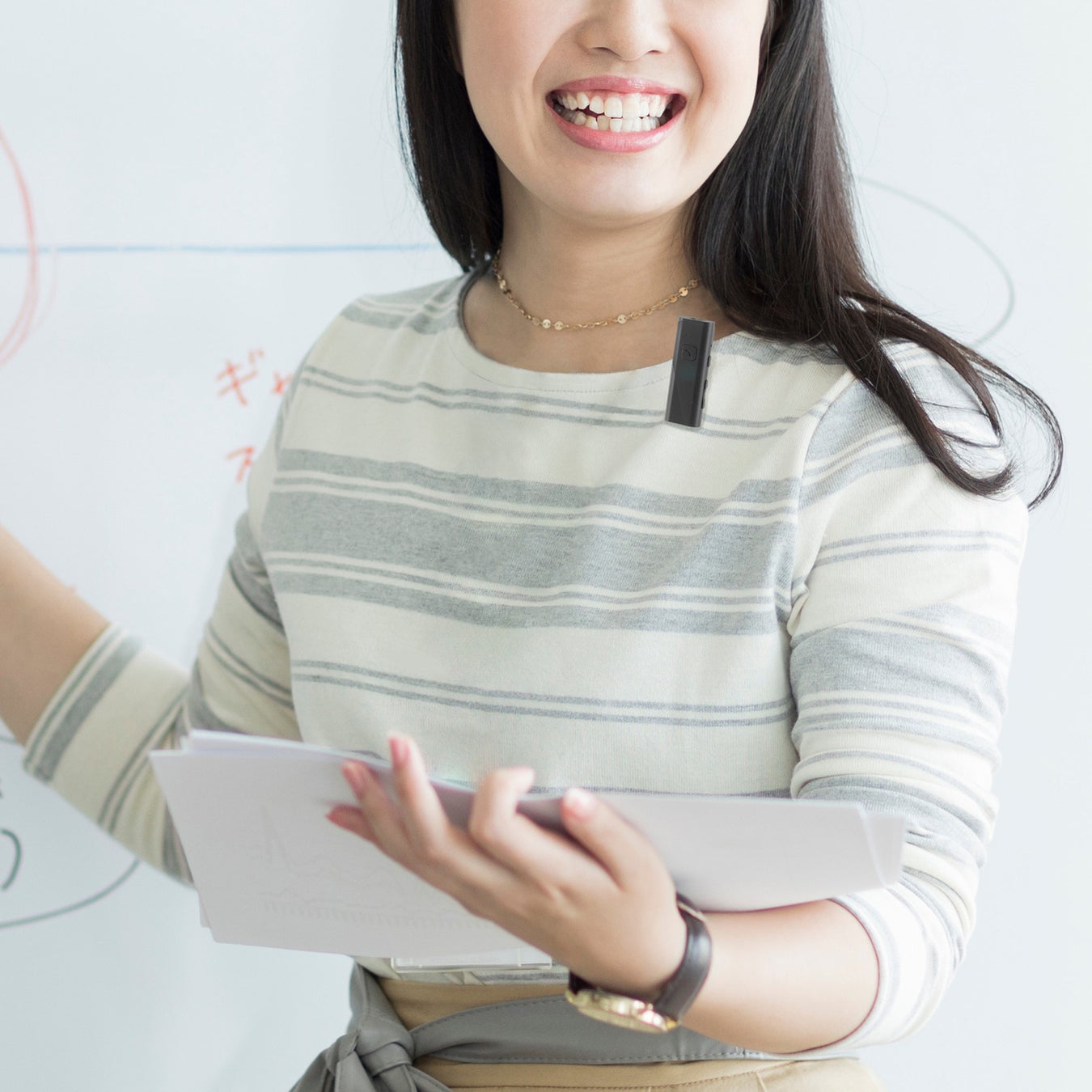 服の襟やネクタイなどに簡単に取り付けられるクリップ式を採用しています。マイクを口元近くにしっかりと固定でき、ハンズフリーの状態でクリアな音声を届けることができるため、WEB会議やオンライン授業での使用に最適です。