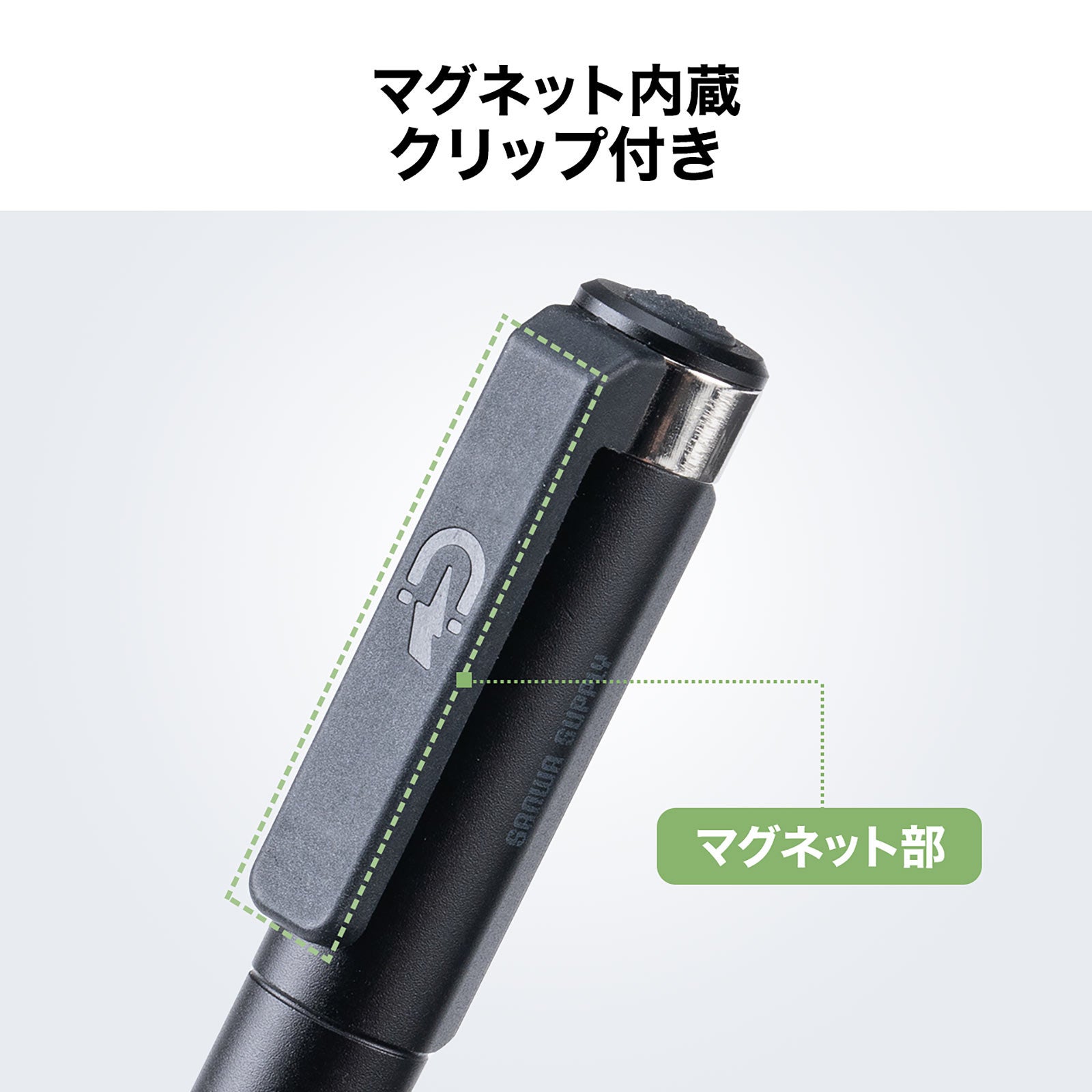 また、ペン先はスポットLEDライトを搭載し、暗い隙間や遠くを照らすのに最適です。