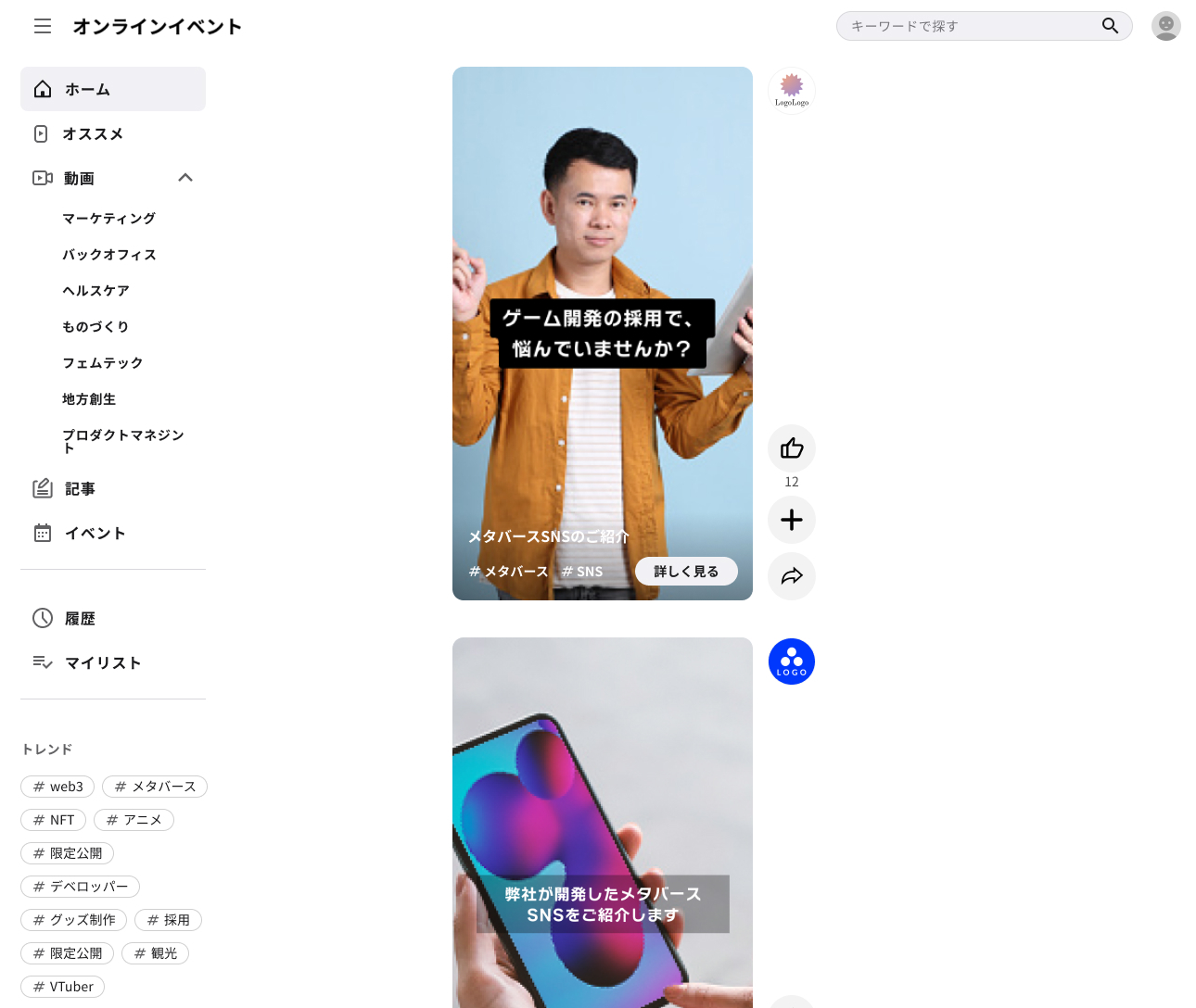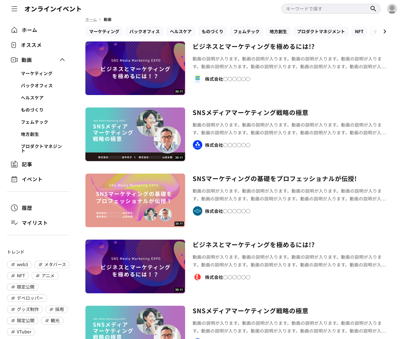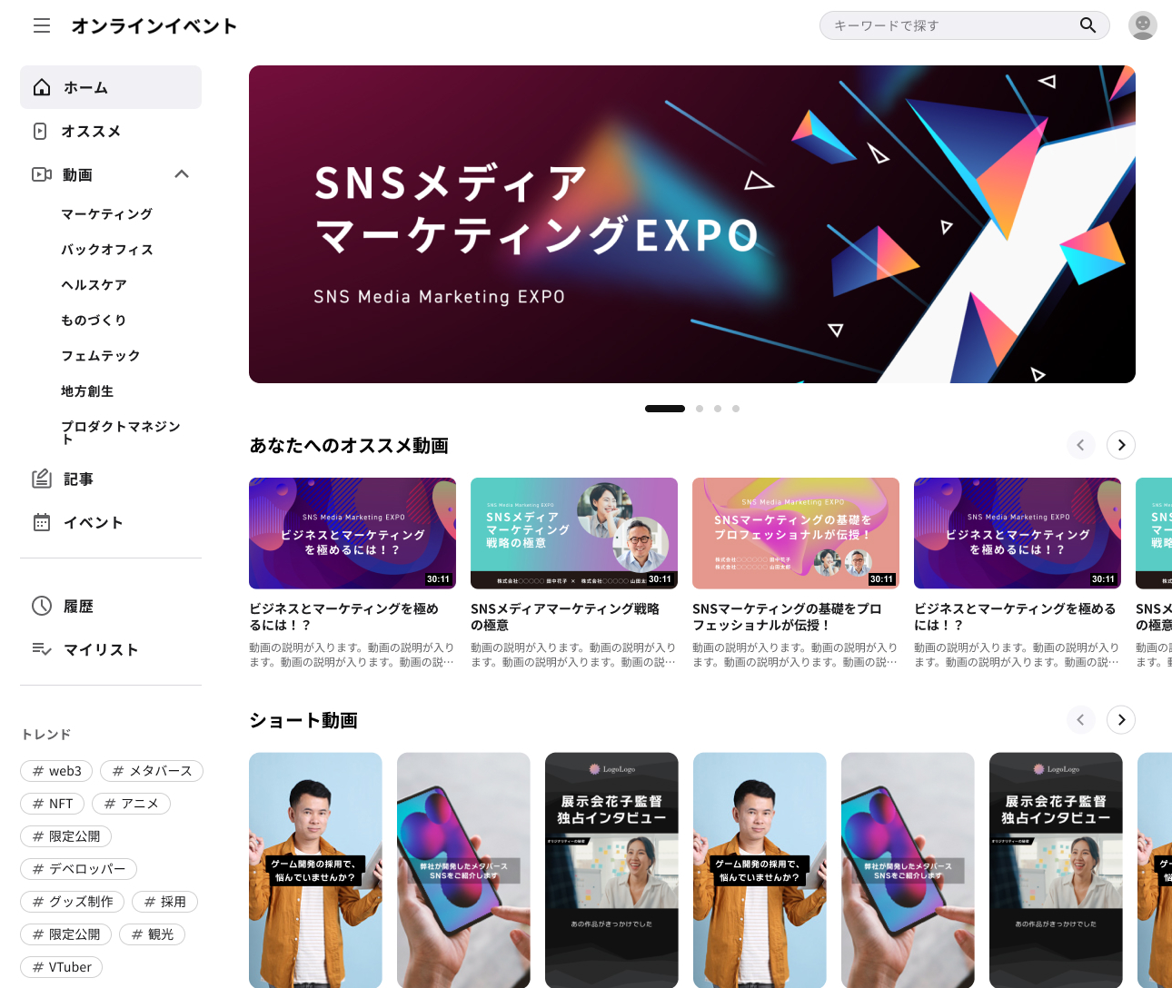 メディアプラットフォームとしても活用可能。動画コンテンツをメインとしたオンラインイベントの開催に適したUI/UXをご提供します。