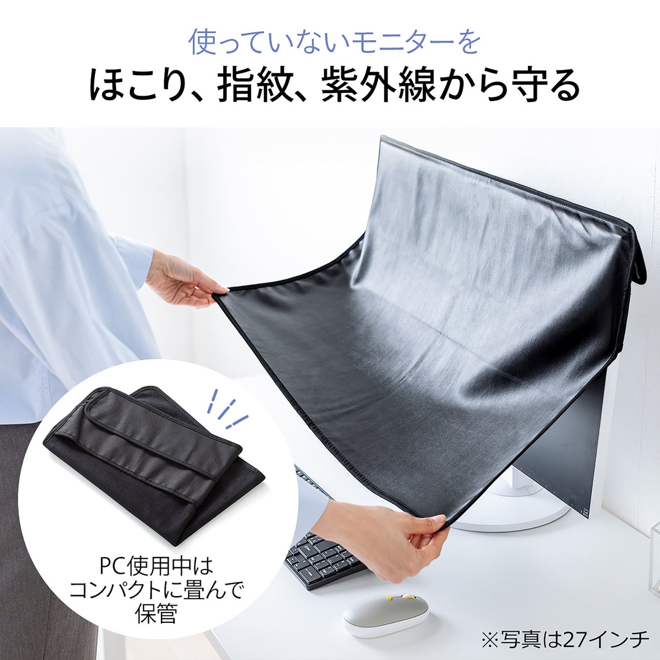 PCを使用していない際にモニターにかぶせることで、ほこり、指紋、紫外線から守ることができます。