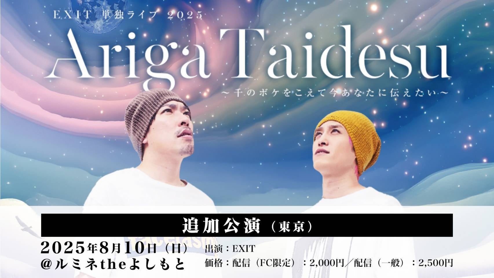 ルミネtheよしもとにて追加公演決定!『EXIT 単独ライブ 2025 Ariga Taidesu 』 ~千のボケをこえて今あなたに伝えたい~