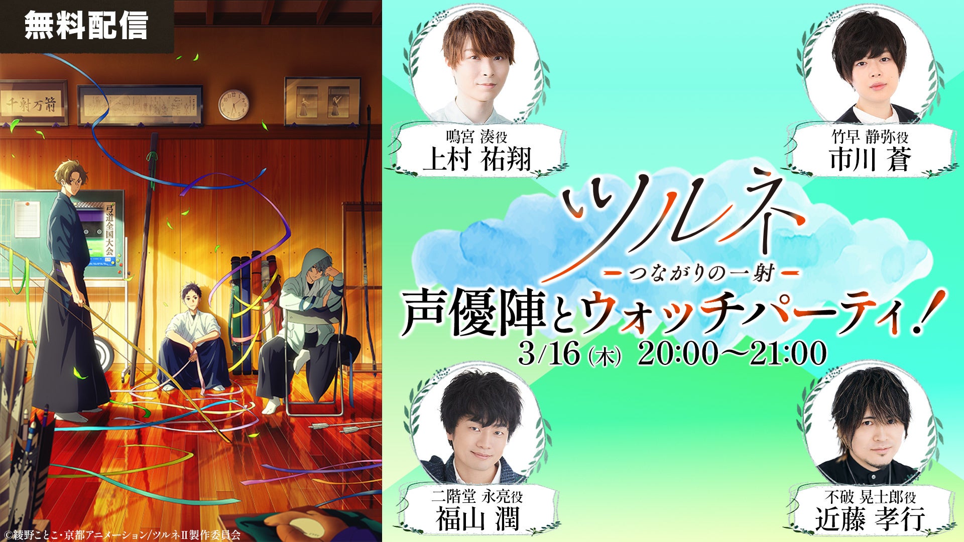 3月16日20時より、特番「『ツルネ -つながりの一射-』声優陣とウォッチパーティ!」無料配信決定