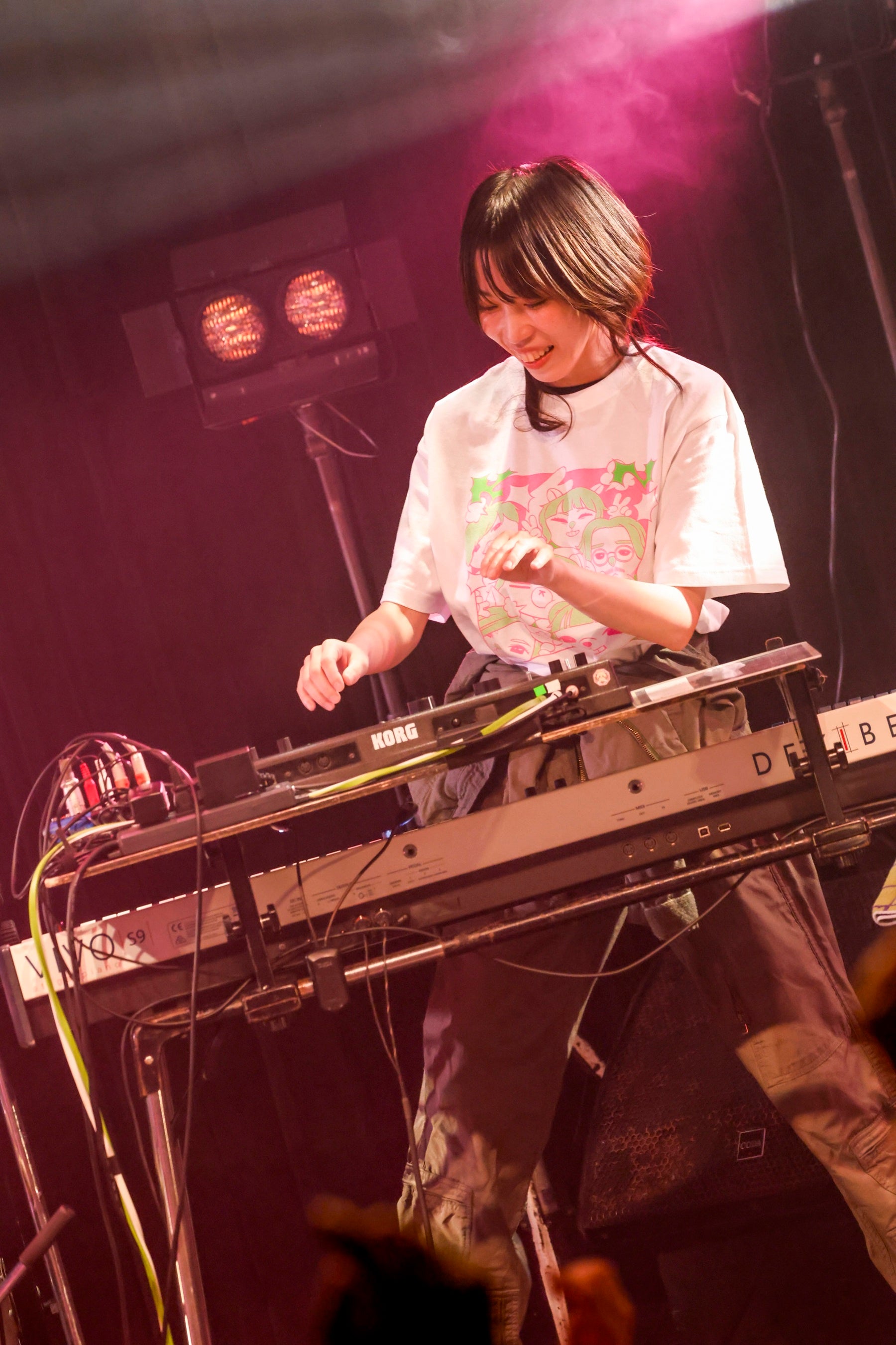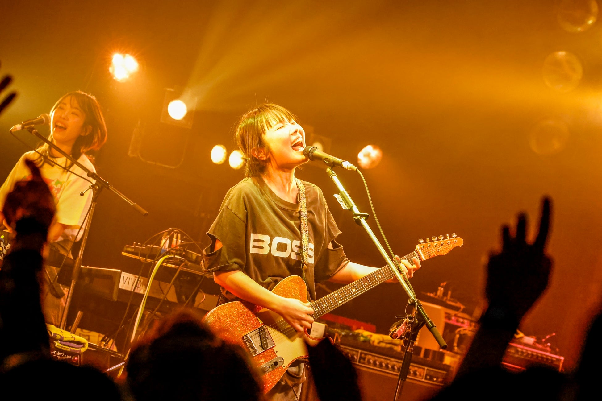 ネクライトーキーは「めっちゃかわいいうた」でライブを開始し、性急なビートや朝日(Gt)の鋭いギターサウンドでフロアの熱を一気に高める。その後も藤田(Ba)が奏でるたくましいベースサウンドがグルーヴを牽引した「bloom」、タイトなキメとキャッチーなメロディが中毒性が生み出した「北上のススメ」と、カラフルなアンサンブルで魅了していく。MCでは、もっさ(Vo,Gt)が「コレちゃん、呼んでくれてありがとうございます! 面識はずっと前からあったんですけど、初デートに誘われちゃって…本当にうれしいもんです」と照れ笑いを見せた。