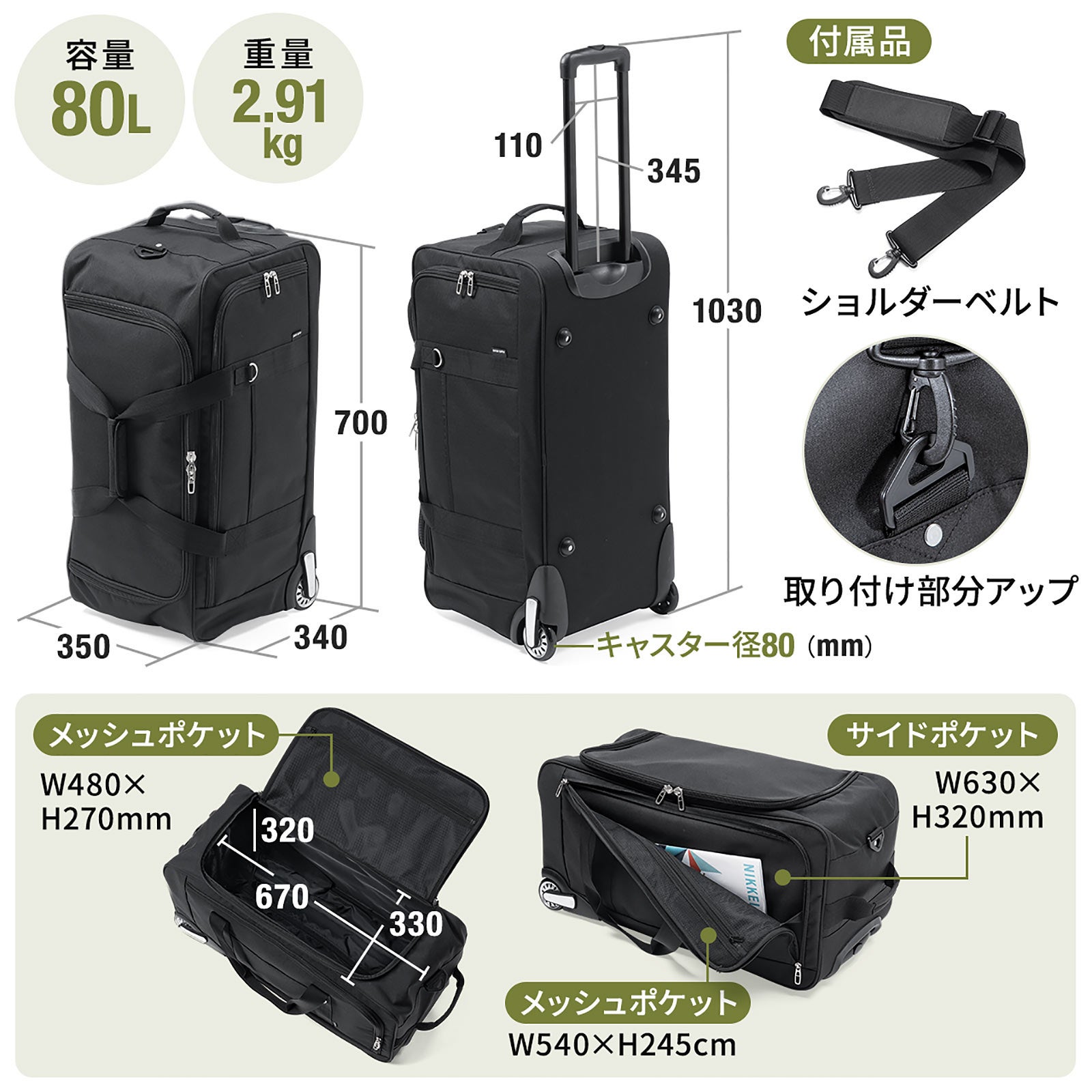 ボストンキャリーバッグ 大容量80リットル