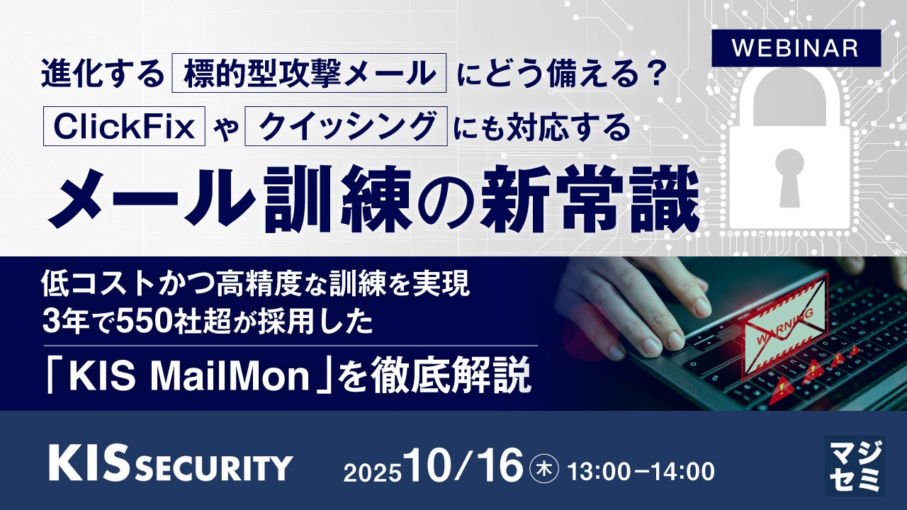 マジセミ株式会社は「進化する標的型攻撃メールにどう備える? ClickFixやクイッシングにも対応するメール訓練の新常識」というテーマのウェビナーを開催します。