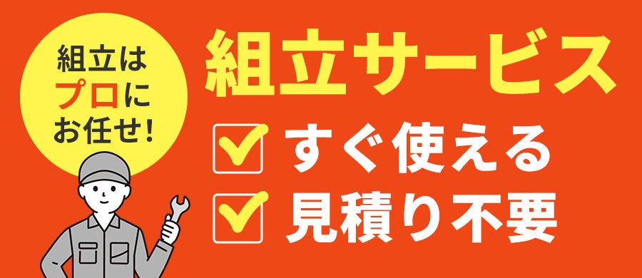 プロが組立作業を行うサービスです。本サービスを対象商品と一緒にご注文いただければ、届いた日からすぐにご使用できます。面倒な見積もり依頼は不要で対象の組立設置サービス商品を一緒にカートに入れて、発注するだけで完了です。プロが配送・現地で開梱・組立・設置を行います。パーツが多く、難しい電動昇降デスクも プロが素早く組み立てます。段ボールやエアークッション・発泡スチロールなど 捨てるのが面倒な梱包材も回収します。