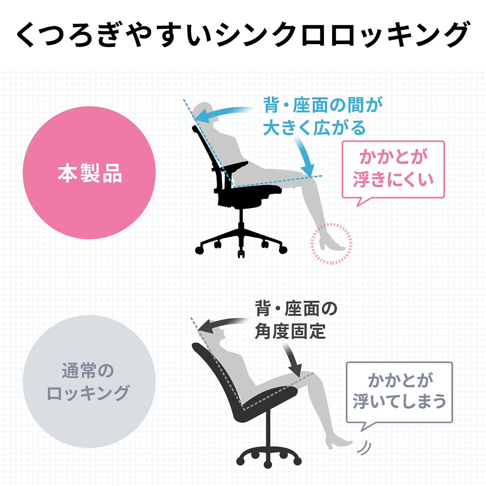 スイングチェア ヘッドレストなし メッシュ シンクロロッキング 耐荷重120kg 4Dアームレスト