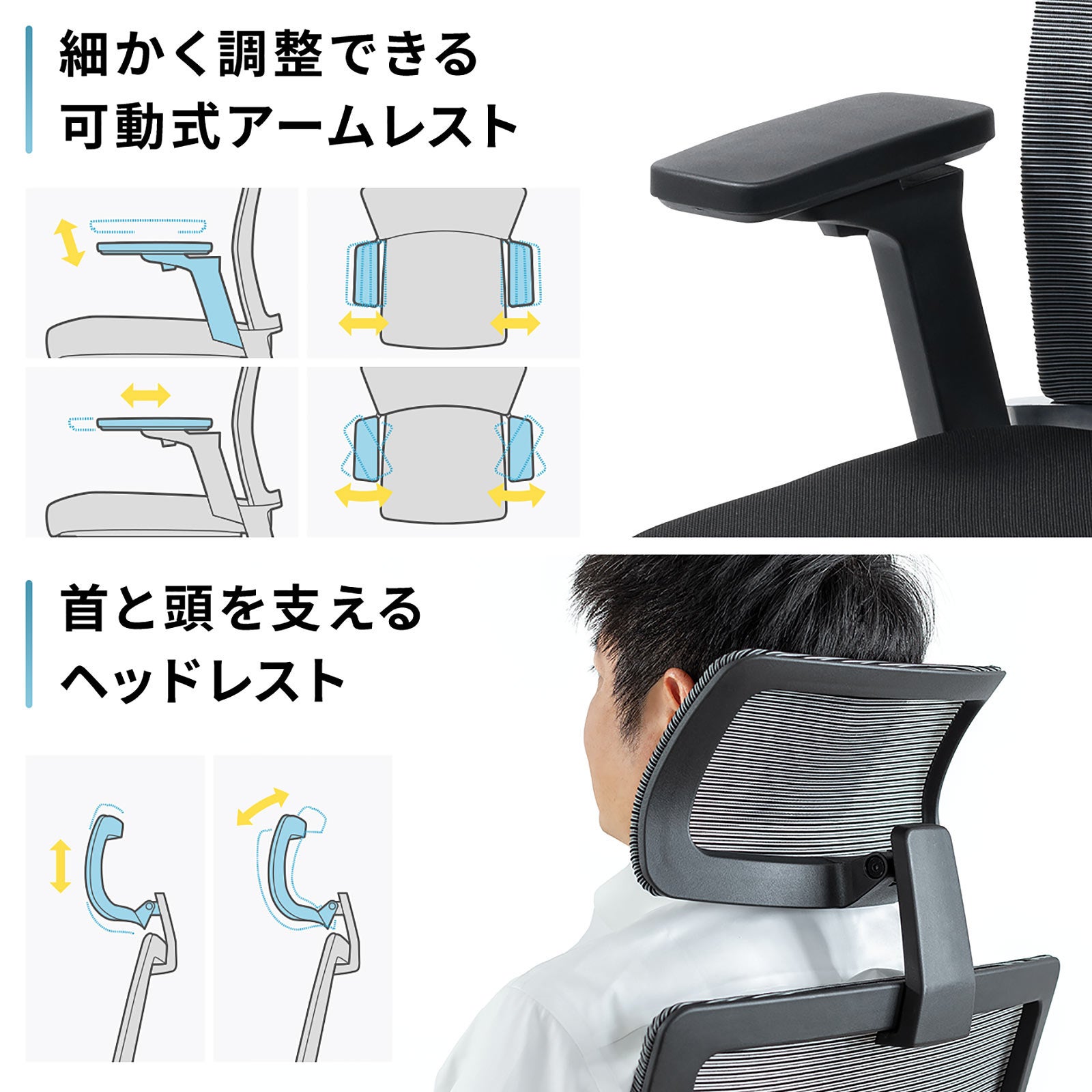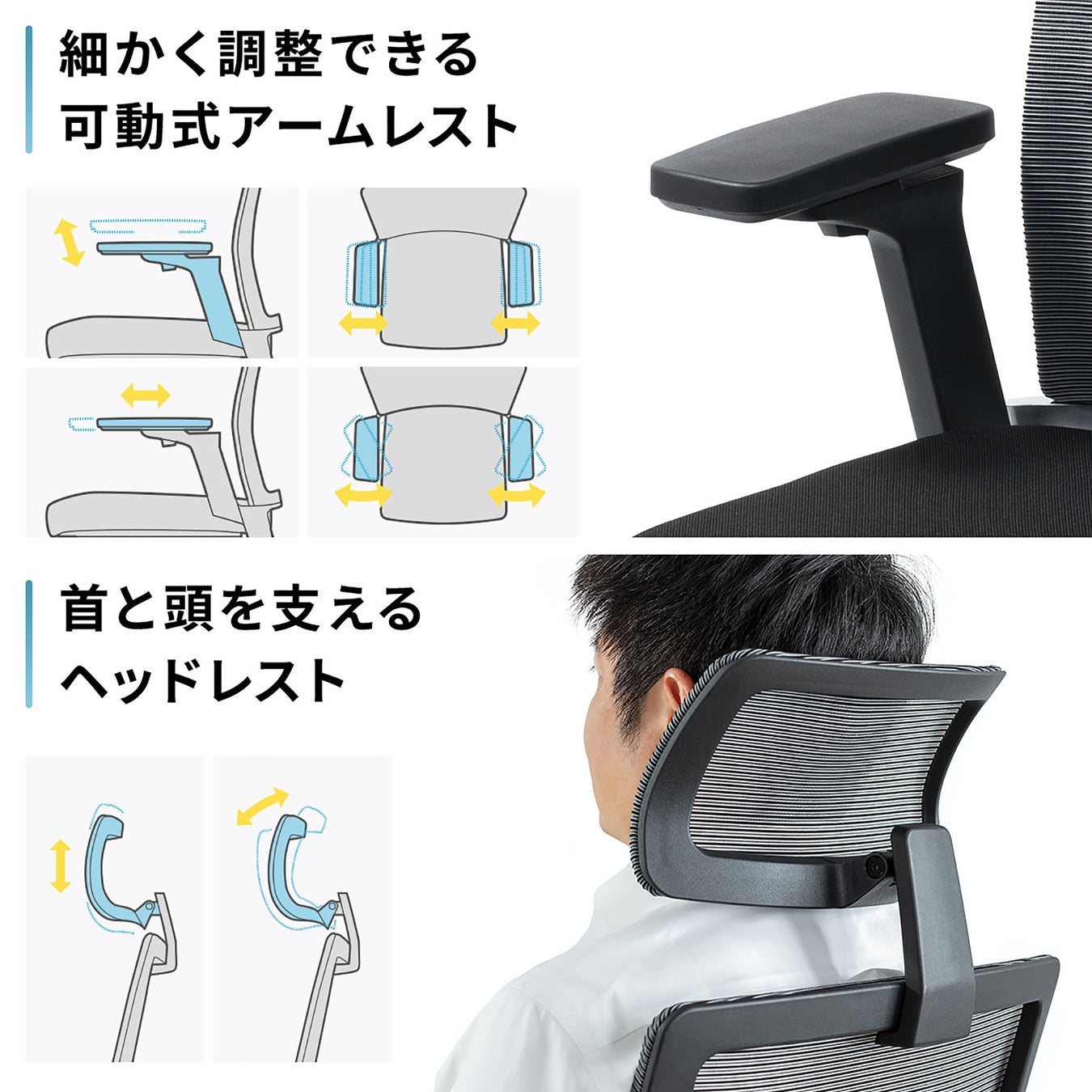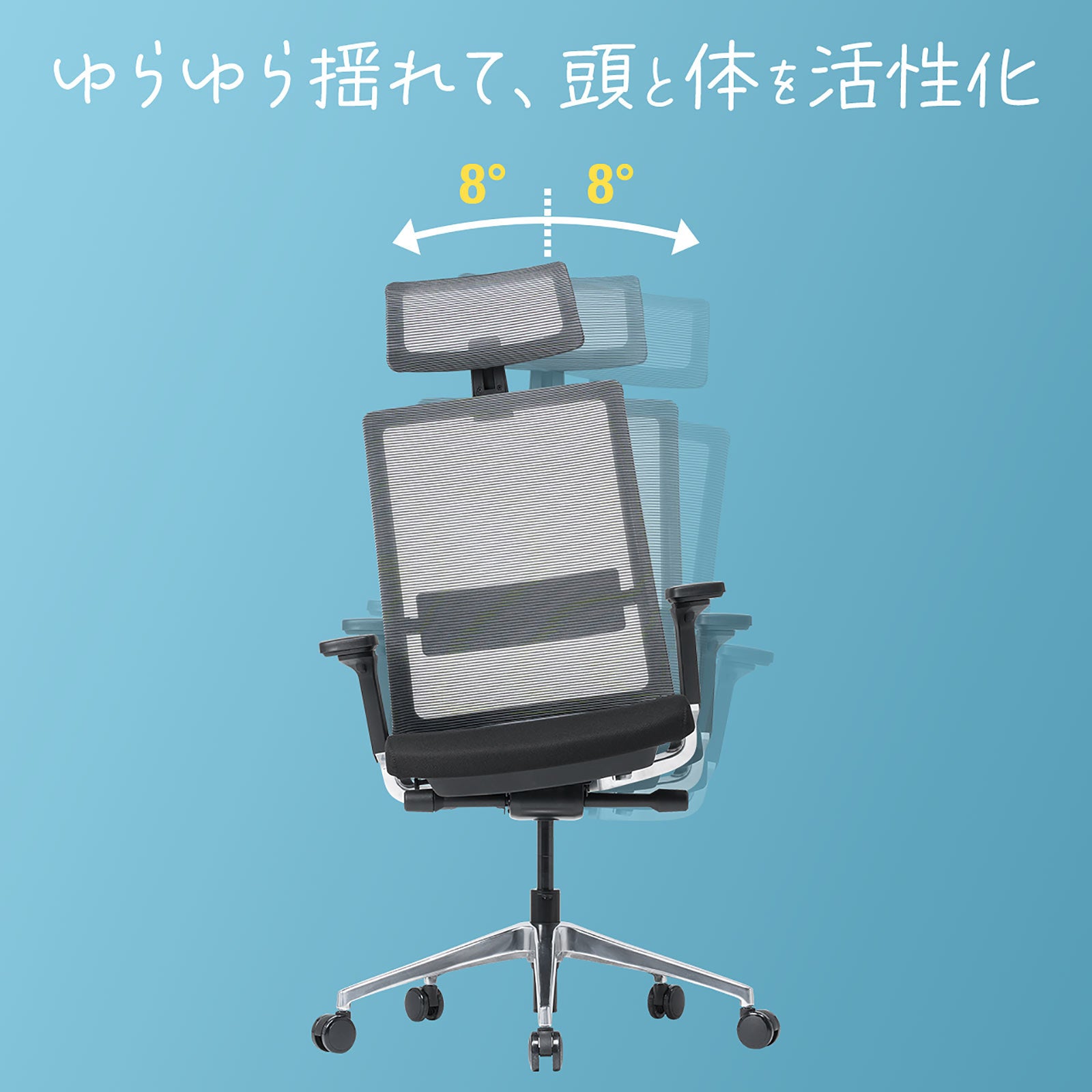 スイングチェア ヘッドレスト付き メッシュ シンクロロッキング 耐荷重120kg 4Dアームレスト