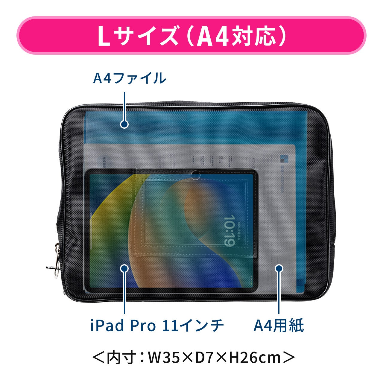200-SL098Sのサイズは約W180×D60×H130mm、 重量は約200g、200-SL098Mのサイズは約W250×D50×H165mm、 重量は約250g、200-SL098Lのサイズは約W350×D70×H260mm、 重量は約350gです。