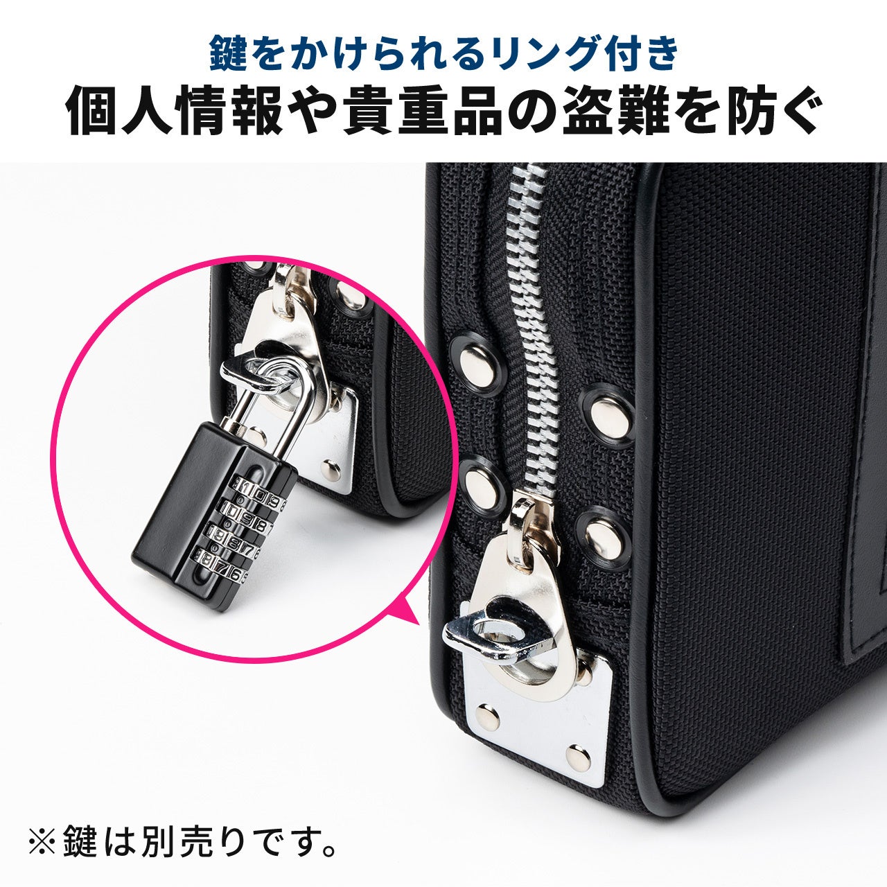 ファスナーの片側がリング状になっており、市販の南京錠、ダイヤル錠が取付けできます。