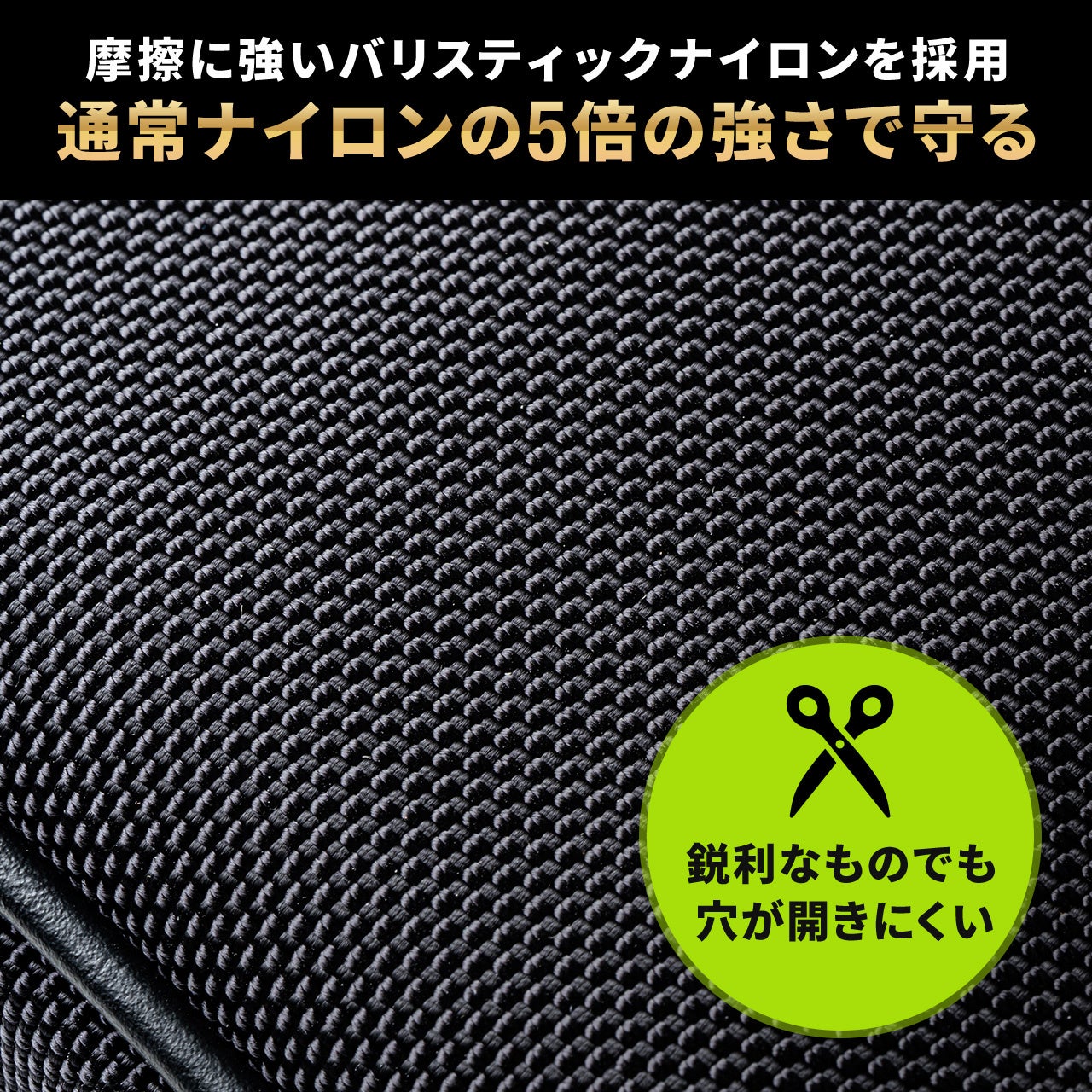 本製品は、堅牢性の高いバリスティックナイロンを採用したセキュリティバッグです。カッターを使ってもなかなか切ることが出来ない素材です。
