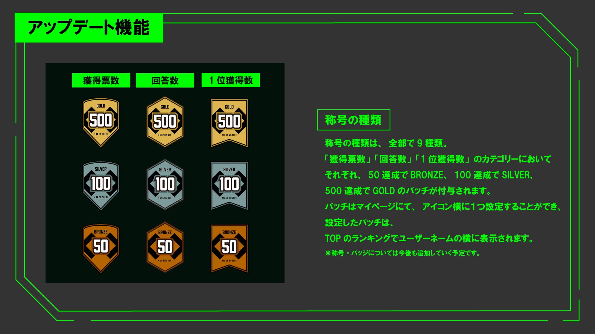 ・大喜利回答の称号・バッジの実装