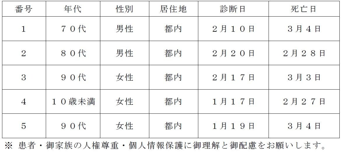 都内で新型コロナウイルスに感染した方が死亡されましたのでお知らせします。