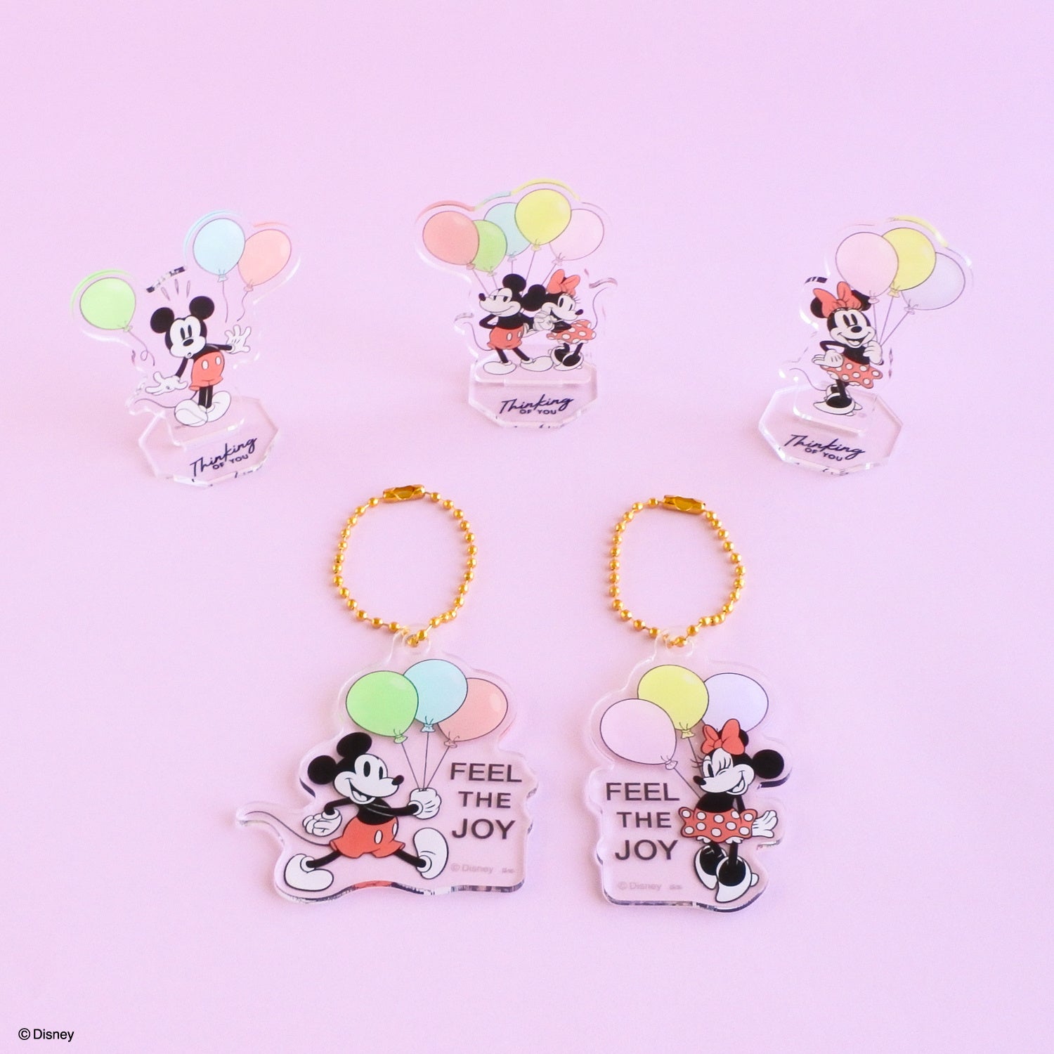 「ミッキーマウス」と「ミニーマウス」がバルーンを持って、「ミニーマウスの日」のお祝いの準備をしているような、見るだけで笑顔になるデザインです。「ミッキーマウス」が「ミニーマウス」を想う気持ちをイメージしたメッセージがポイント。