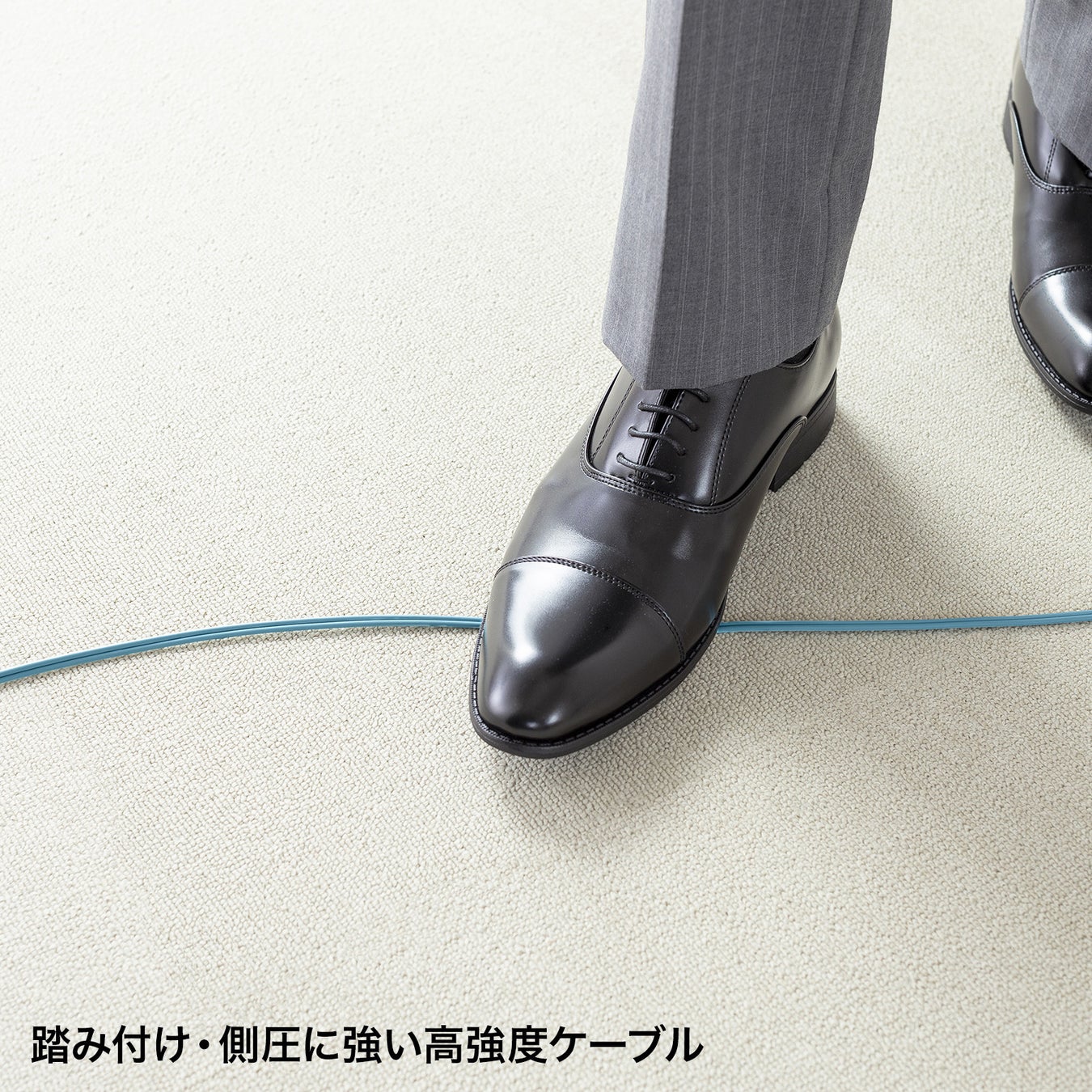 足での踏み付けや、扉の挟み込みなどによる側圧に強いケーブルで、人の行き来が多い場所での使用に最適です。