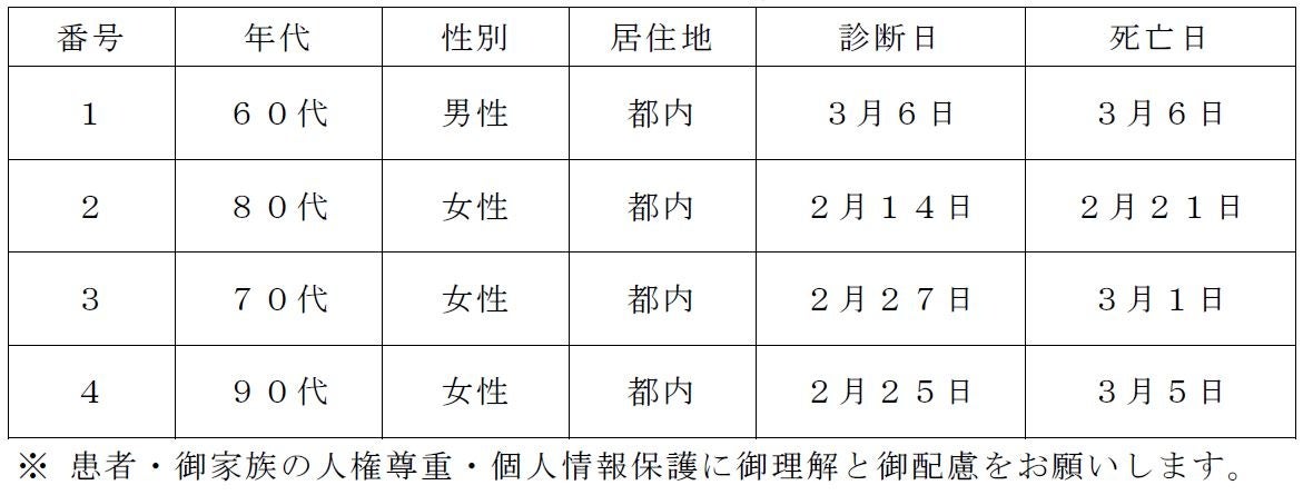 都内で新型コロナウイルスに感染した方が死亡されましたのでお知らせします。