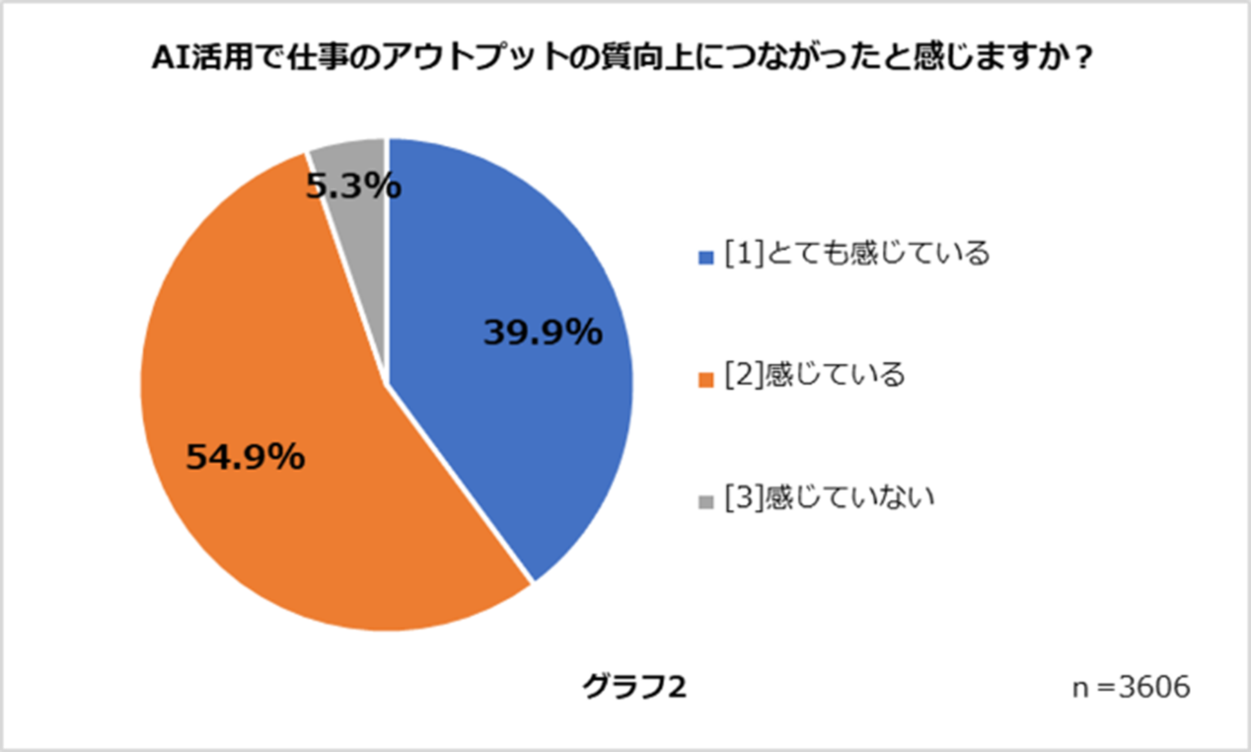 ●生成AIを業務に活用しているパートナーのうち、95%が「生成AI活用で仕事のアウトプットの質向上につながっている」と感じている。(グラフ2)