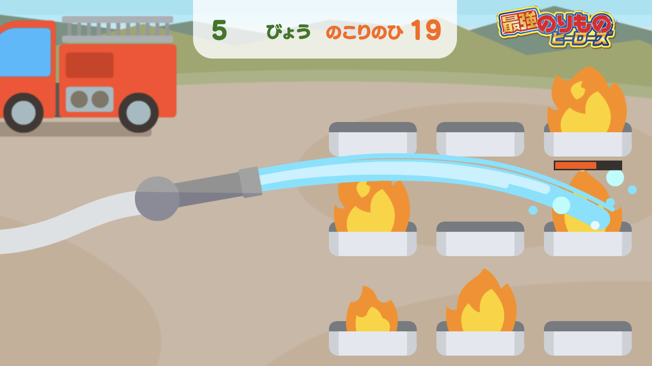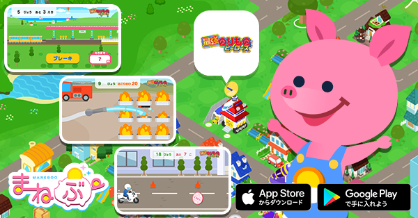 アプリ内店舗では、「最強のりものヒーローズ」の中に登場するのりものから電車・消防車・白バイにまつわるお仕事「でんしゃうんてん」「しょうかくんれん」「しろバイれんしゅう」の3種のゲームをお楽しみいただけます。