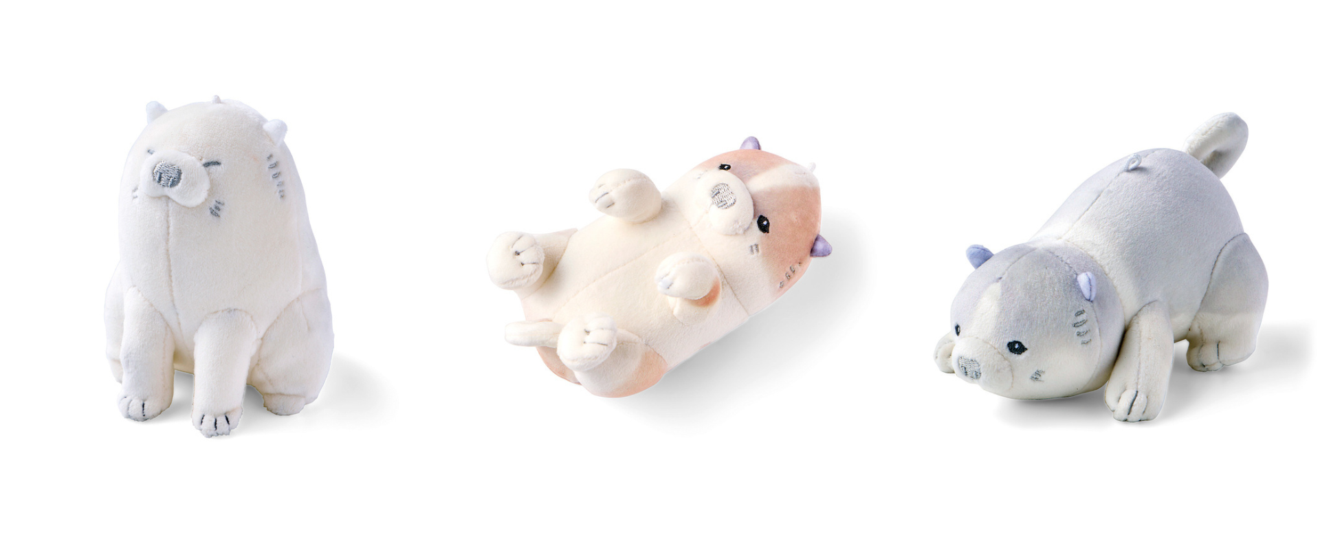 本物のわんこをかわいがるように、思わずみよ~んとひっぱりたくなるもちもち感も魅力です。ころんと両方のてのひらにすっぽり収まるサイズ感もたまりません。1匹にひとつ、カニカンキーホルダーが付いています。