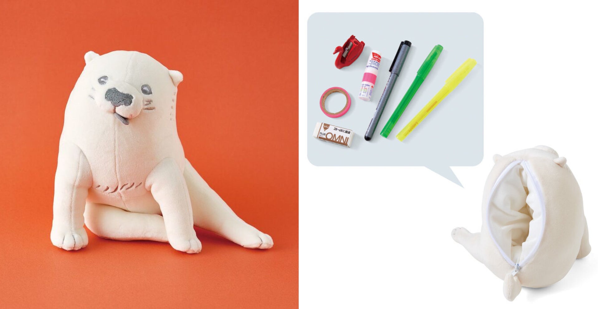 長沢芦雪『白象黒牛図屏風』で牛のそばにちょこんと描かれる脱力わんこ芦雪犬を立体化したペンポーチです。