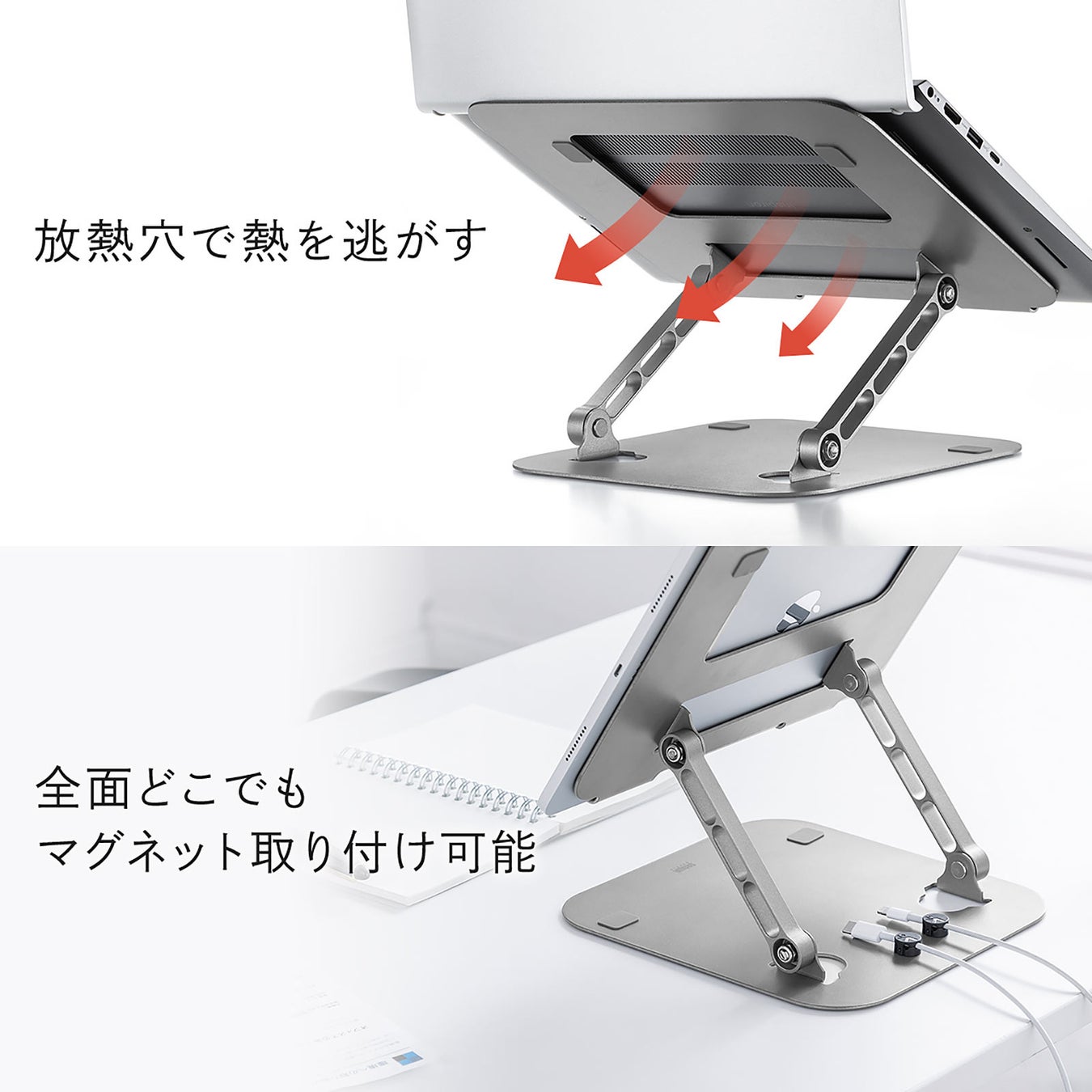 ノートパソコンスタンド ノートPC スチール製 タブレットスタンド 折りたたみ式 持ち運び 無段階 角度調整 高さ調整 姿勢改善 卓上 マグネット製品