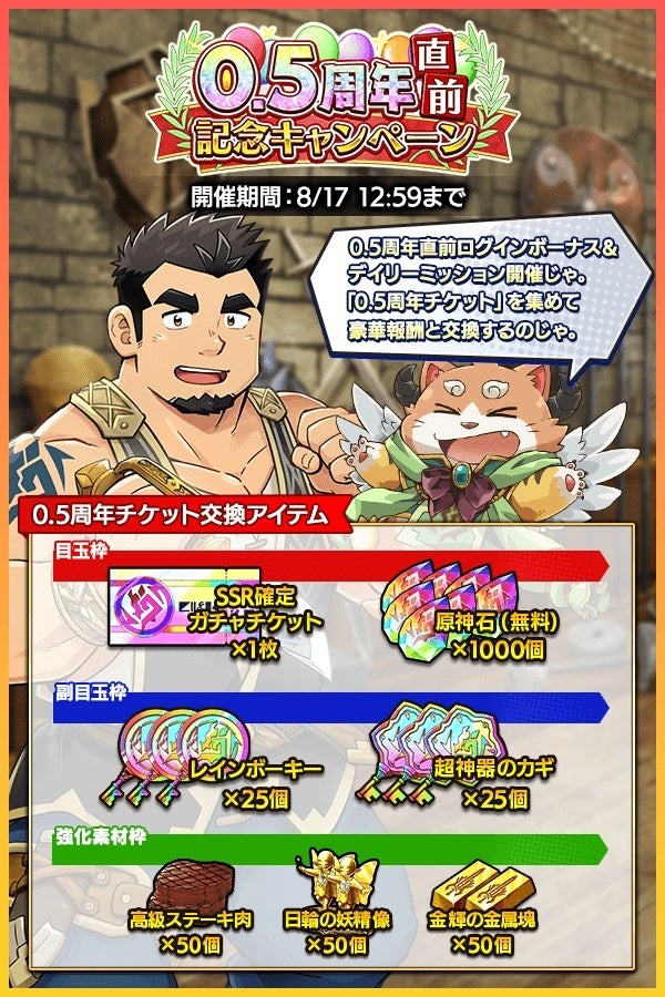 ・0.5周年直前記念ログインボーナス&デイリーミッション開催!