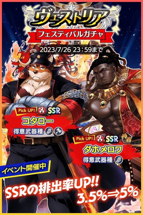 SSRの入手確率が大幅にUPした「ヴェストリアフェスガチャ」が開催!