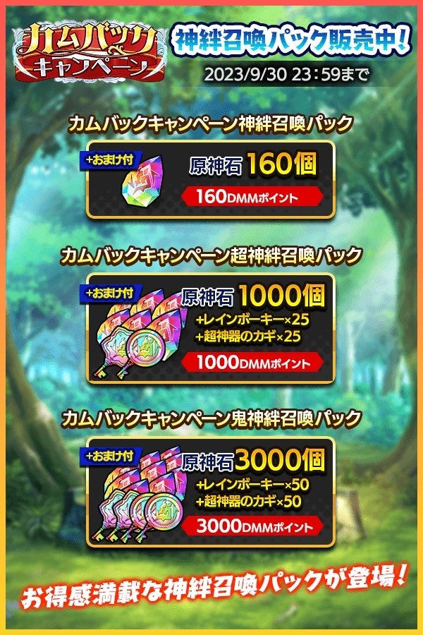 カムバックユーザーを対象にしたおトクなパックが3種登場!