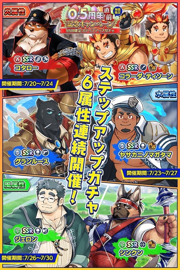 SSRのキャラクターが該当の属性しか出ない、特別仕様のステップガチャが登場!