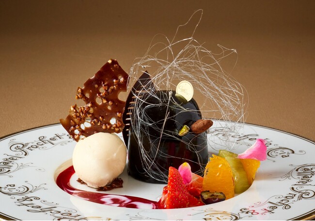 濃厚チョコレートのテリーヌ ワインソース・ワインパミスなどチョコ系フードとドリンクのセットを含む16時~の注文時に合言葉「#チョコの街KOBE」で10%OFFに。