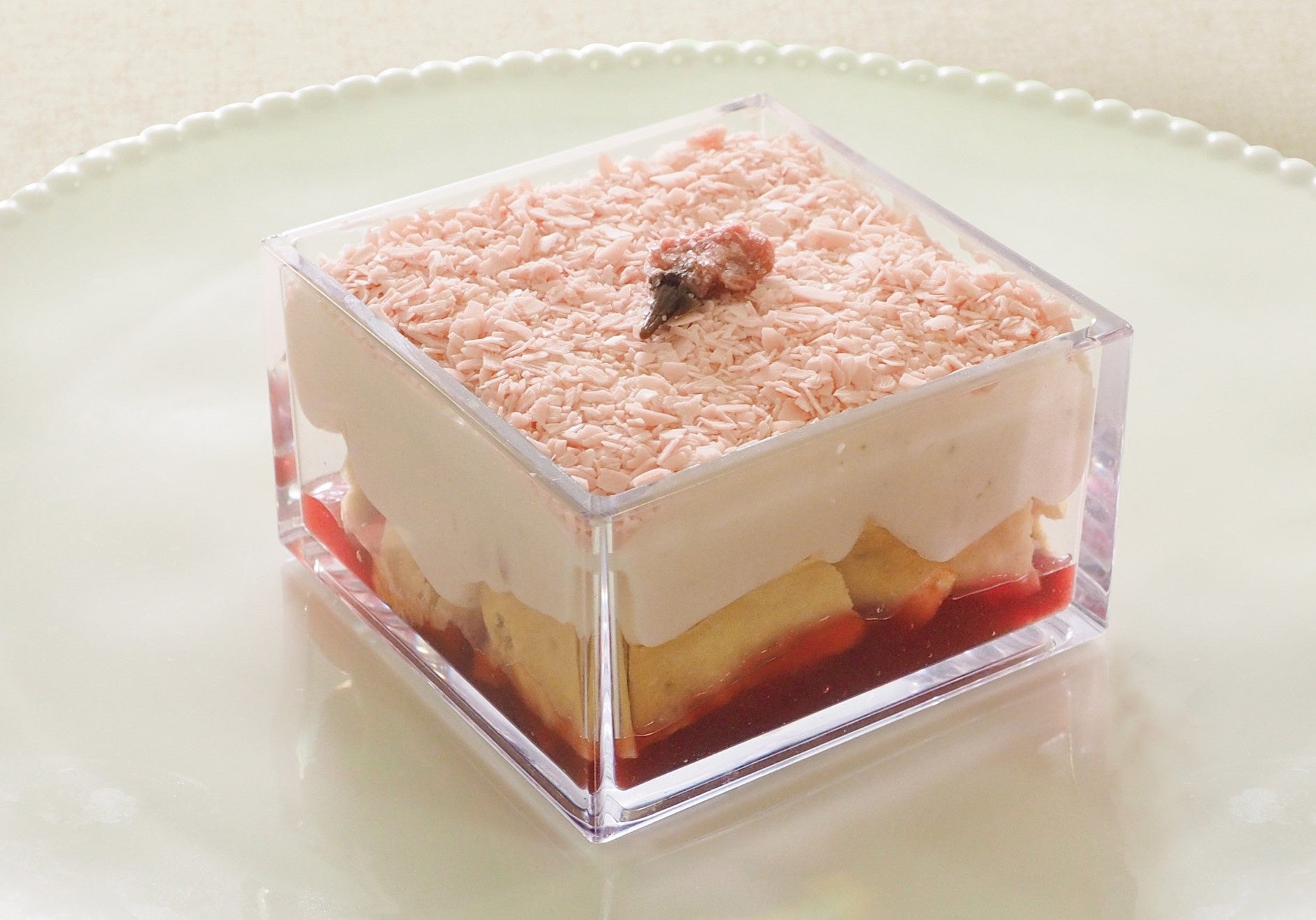 桜餡ムース、スフレ、クラッカーと様々な食感と、フランボワーズの酸味がアクセントとなり最後まで飽きずに楽しめます。