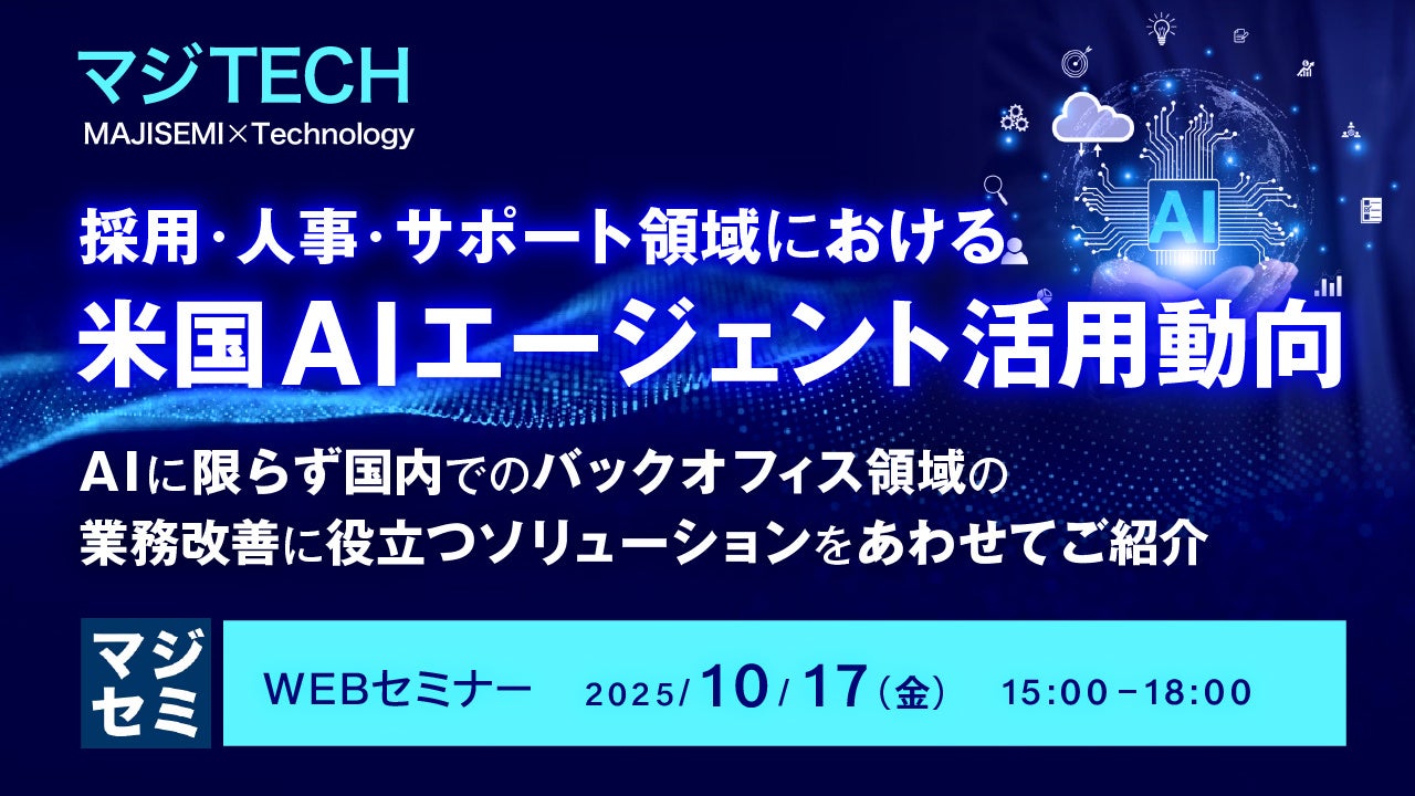 マジセミ株式会社は「採用・人事・サポート領域における、米国AIエージェント活用動向」というテーマのウェビナーを開催します。