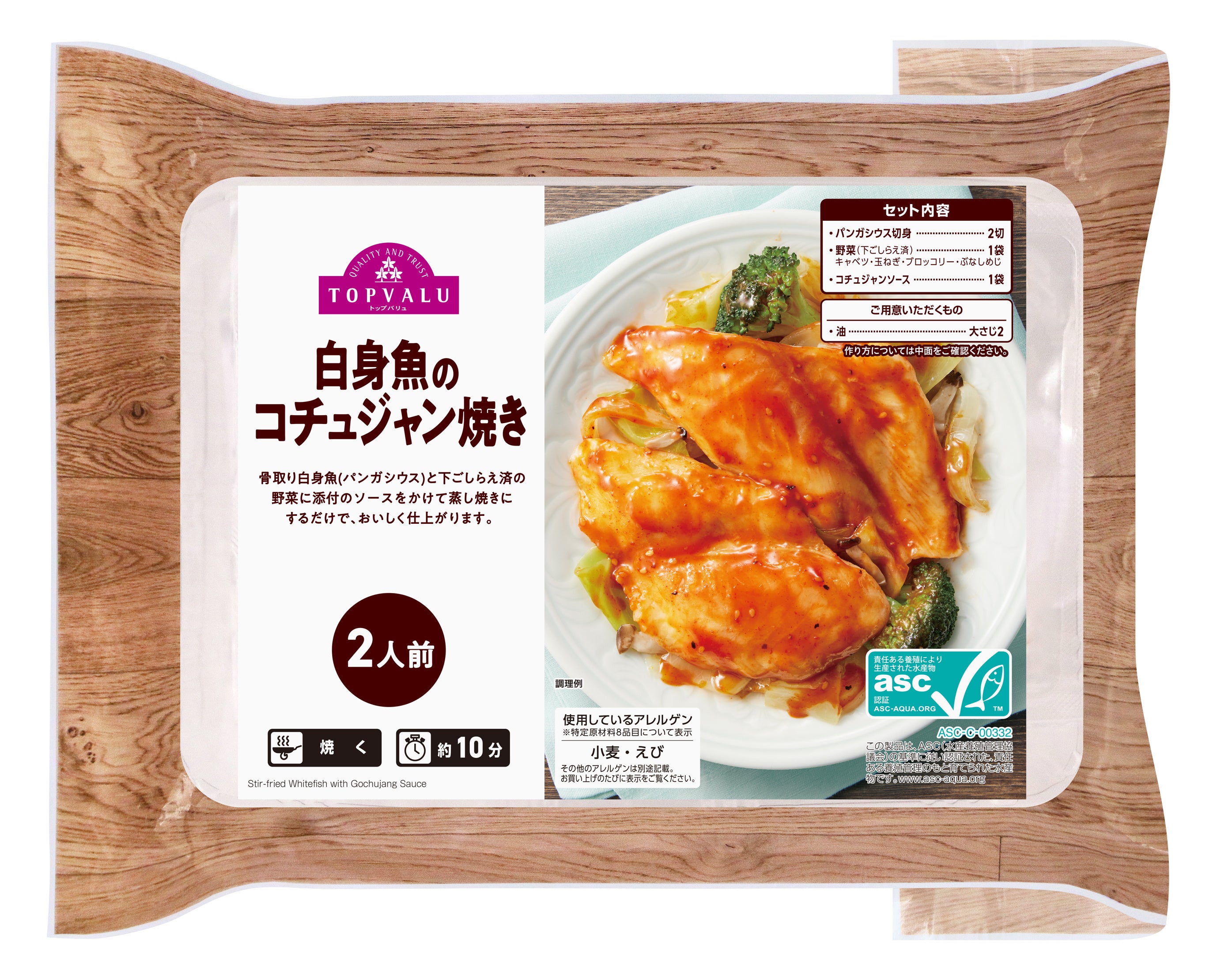 特長:ASC認証の白身魚(ベトナム産パンガシウス)を使用、骨と皮を取っているので食べやすくなっています。あっさりした白身魚にピリ辛のコチュジャンソースがよく合います。
