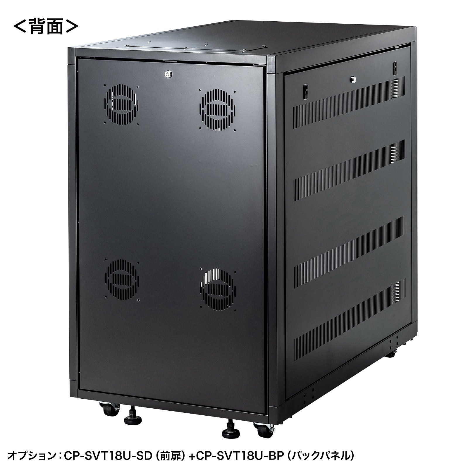 サイズは「CP-SVT18U」が幅650×奥行き1100×高さ1070.3mm、「CP-SVT9U」が幅650×奥行き1100×高さ570.3mmです。奥行きが大きめなので、前後でのサーバー機の構築もできます。