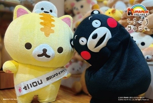 続いてゲストの登場。この日は、「リラックマ」や「すみっコぐらし」を生み出したキャラクター会社「サンエックス」の制作によるくまモンのぬいぐるみ2作品の発売日であり、これを記念して、サンエックスのキャラクターであり広報も務める「コロニャ」が駆けつけた。