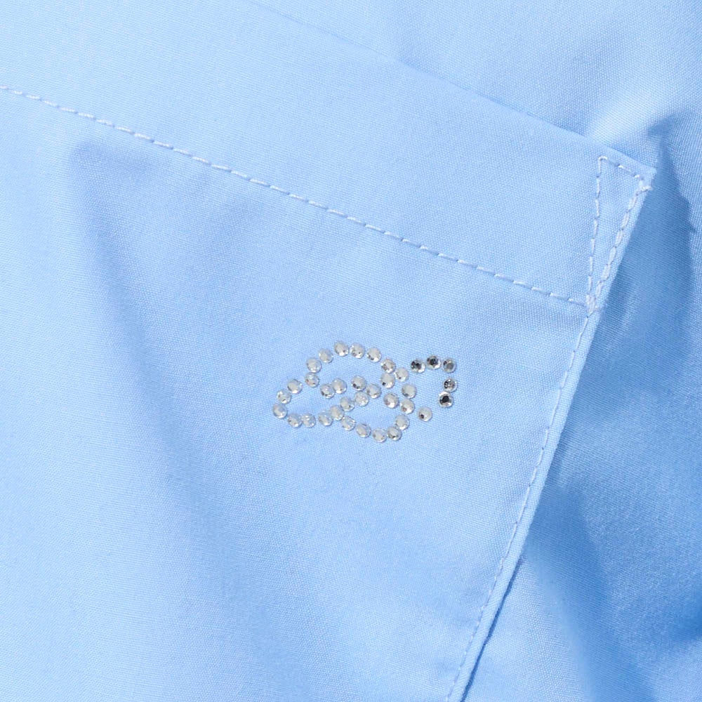 胸にダブルフォーカスのワンポイントのラインストーンを使用しています。袖がボタンで取り外しができ、平日・休日とスタイルを変えて楽しむことができます。