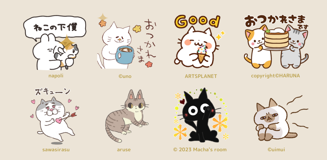また、本キャンペーンでは、2023年1月16日(月)〜3月8日(水)までの期間、ユーザーから新作の猫のスタンプ・絵文字を募集しており、猫好きなユーザーが制作した個性豊かな猫スタンプが多数登場いたします。