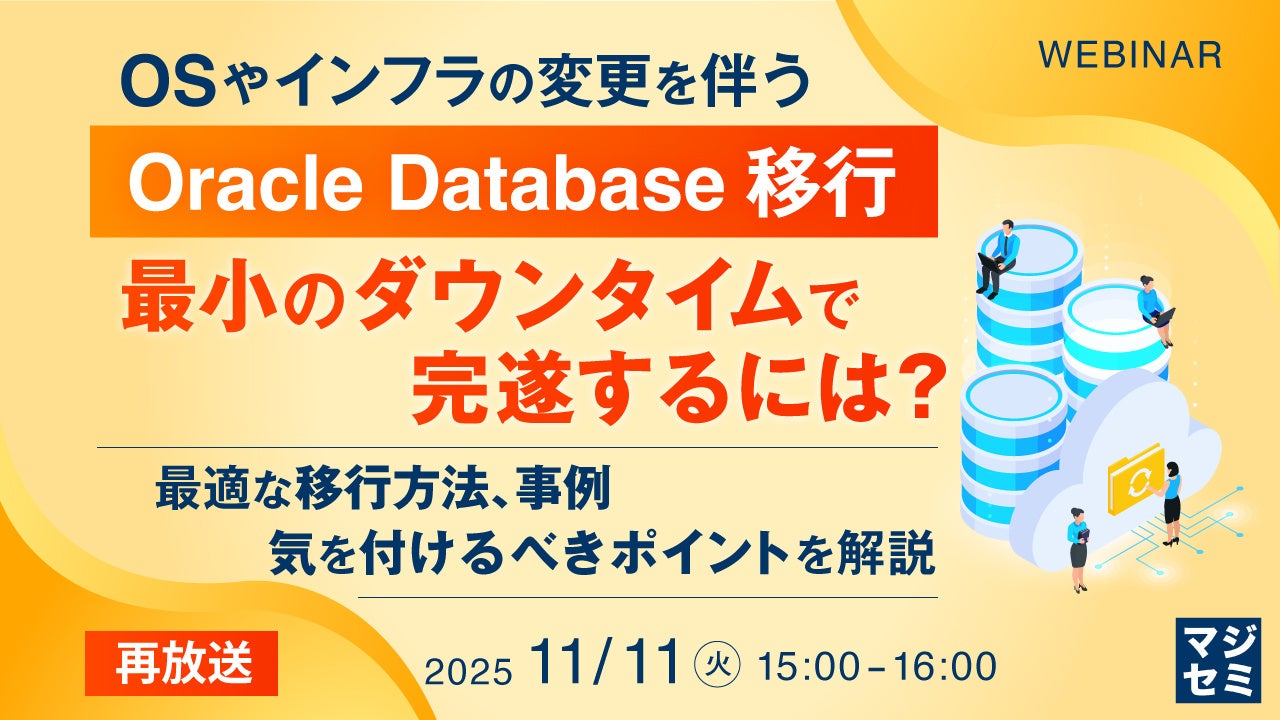 マジセミ株式会社は、大変好評をいただいた「【再放送】OSやインフラの変更を伴うOracle Database移行、最小のダウンタイムで完遂するには?」というテーマのウェビナーを再放送します。