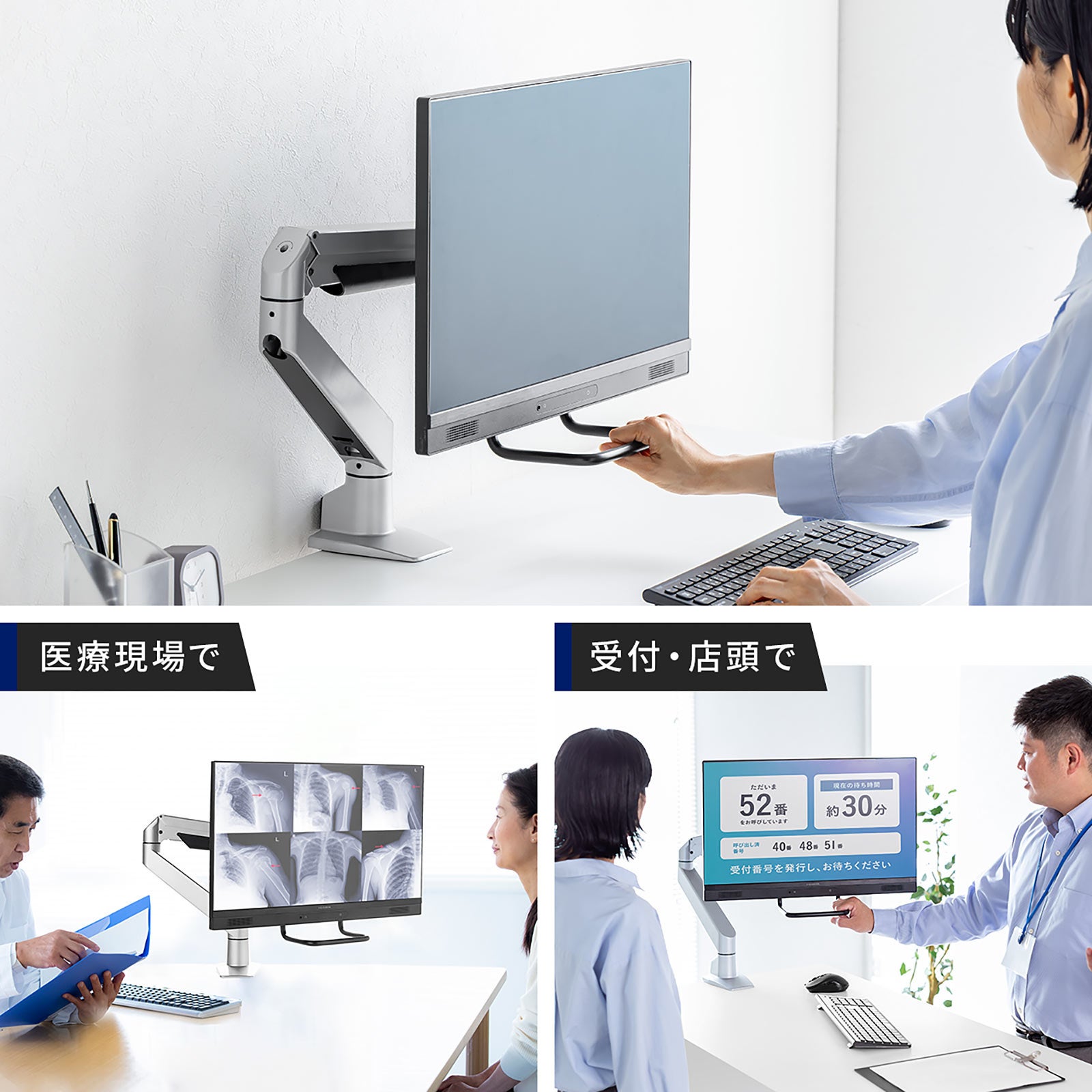 モニターにハンドルを付けることでモニターに直接触れることなく位置調整ができます。