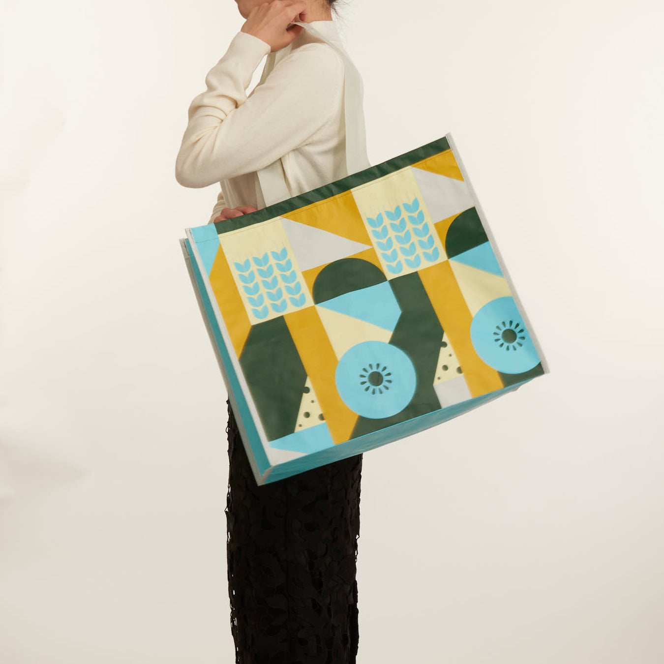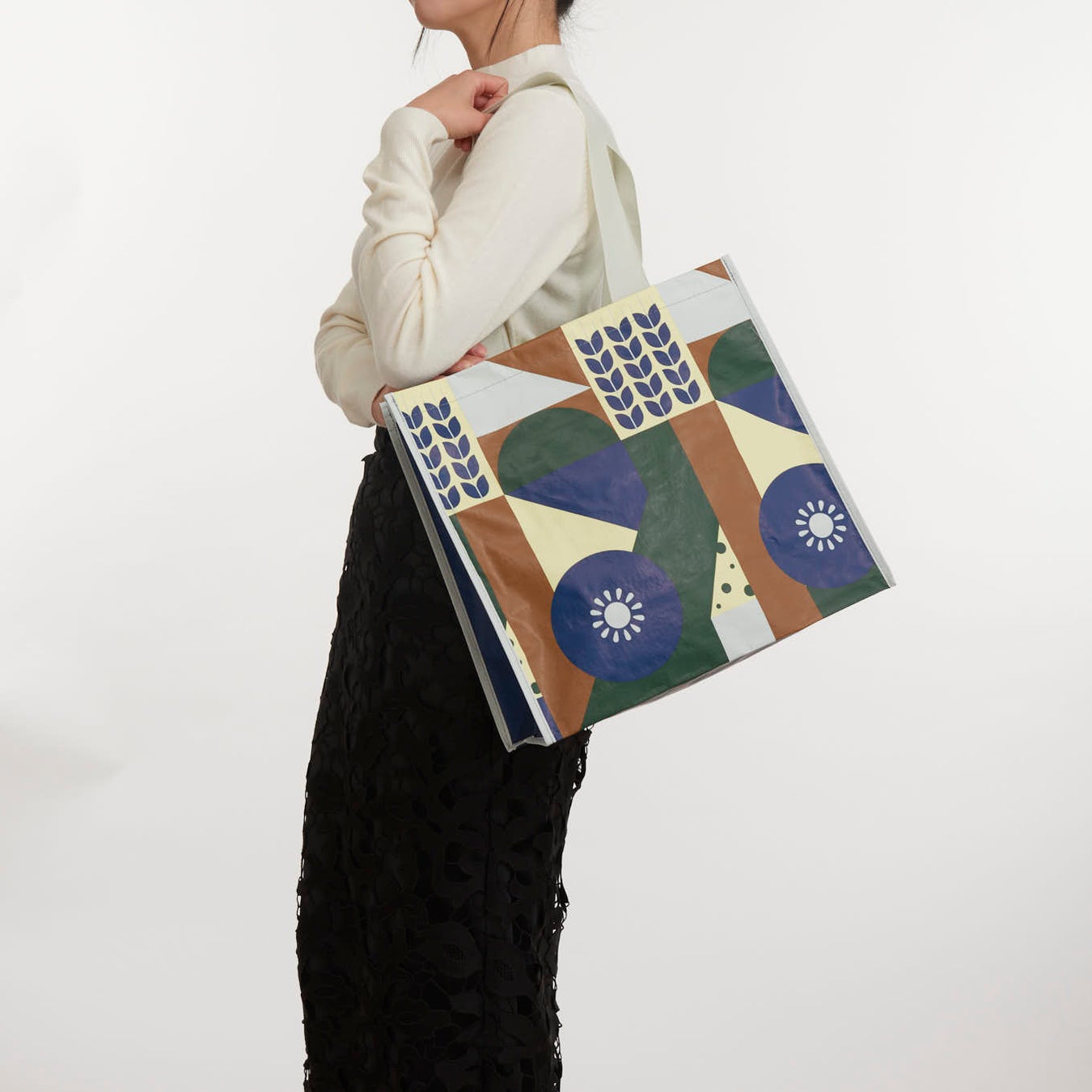 2019年6月から販売を開始した、毎日のお買物がワクワク楽しくなるデザインのリサイクル原料を使用したマイバッグシリーズの取り組みは、今年で6年目を迎えます。2024年のマイバッグは、初めて本体部分のリサイクル原料が100%※2になりました。マイバッグは丈夫で軽く、汚れてもサッと拭くだけ、お手入れが簡単なレジャーシート素材を採用しています。保冷マイバッグは、昨年からご好評をいただいている、バッグの天井部分が3辺開く、コの字型ファスナーを採用し、かつ荷物を出し入れしやすい自立タイプです。