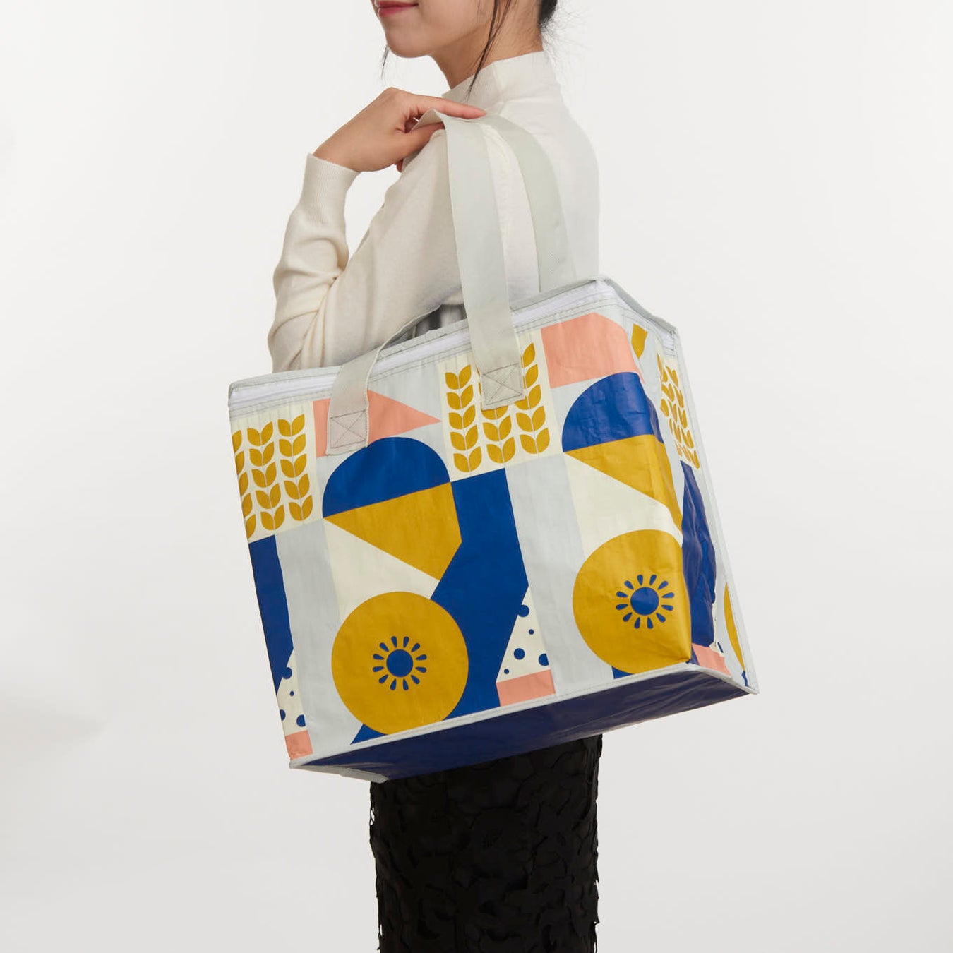 特 長:がばっと開いて自立するコの字型ファスナータイプの保冷バッグです。マチ幅も広くとっており、お肉やお魚のパックも安定して持ち運べます。本体部分は100%リサイクル原料を使用しています。