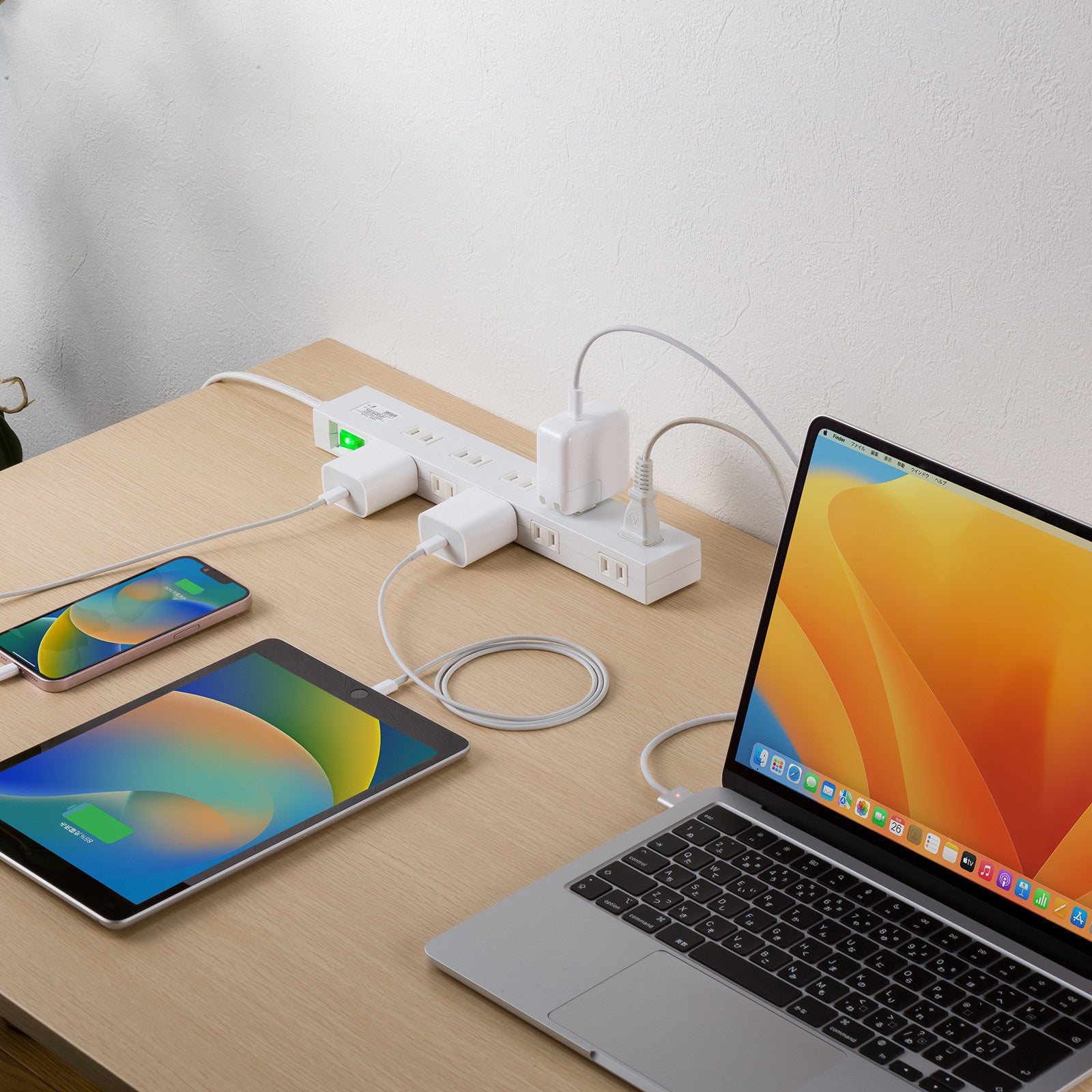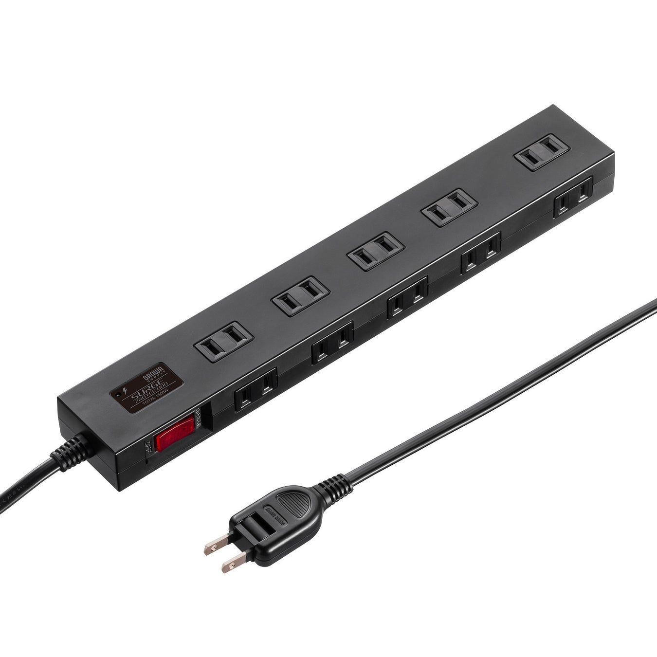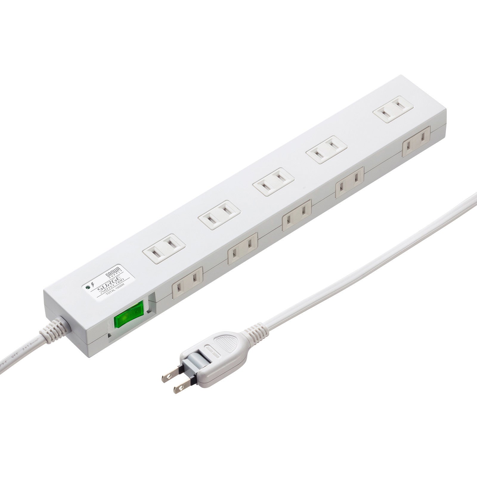 複数の小型ACアダプタを並べて差せる、雷ガードを搭載した10個口電源タップ